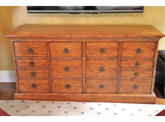 Bausman & Company Inc. Substantial Farm Style Media Console Cabinet With A Beautiful Plank Top , Faux Drawer Cabinets Great Storage. Measures Approximately 74” W X 23” D X 35” Tall