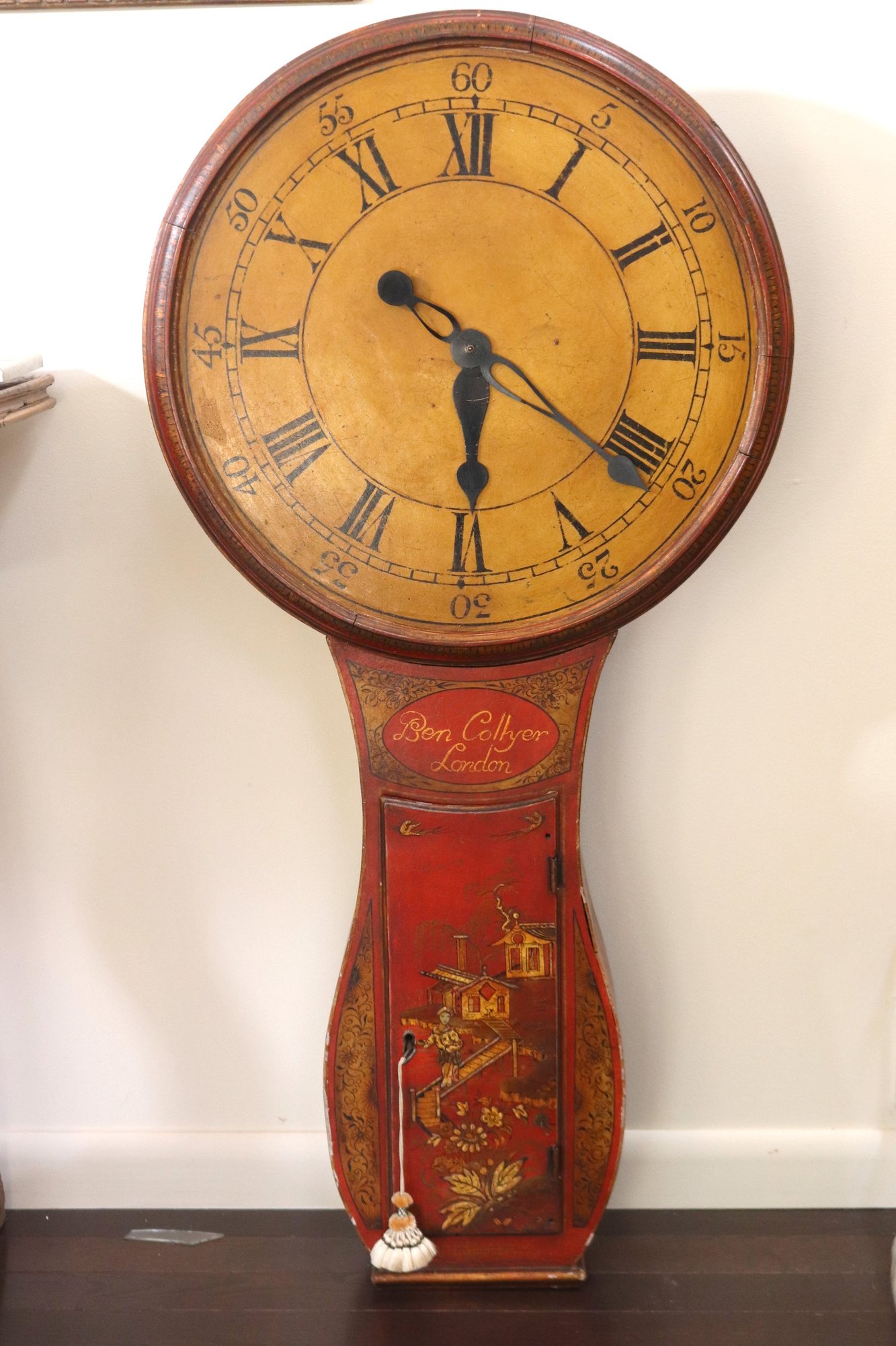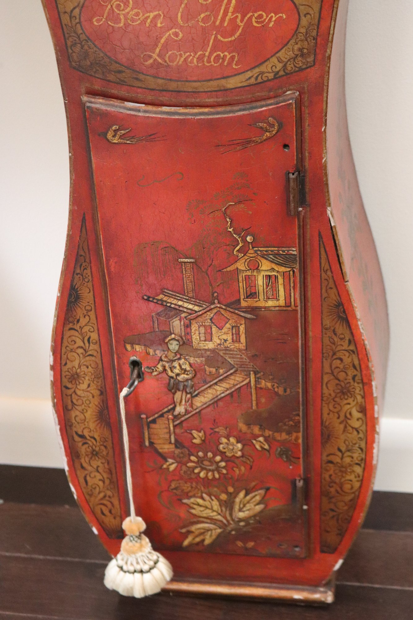 Ben Collyer, London, red Chinoiserie electric wall clock. This is an interesting,