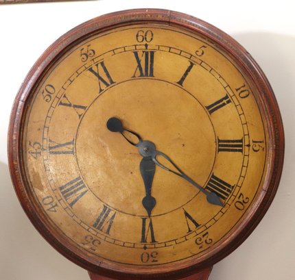 narrow electric clock, with a large round face, that can be hung on a wall, or