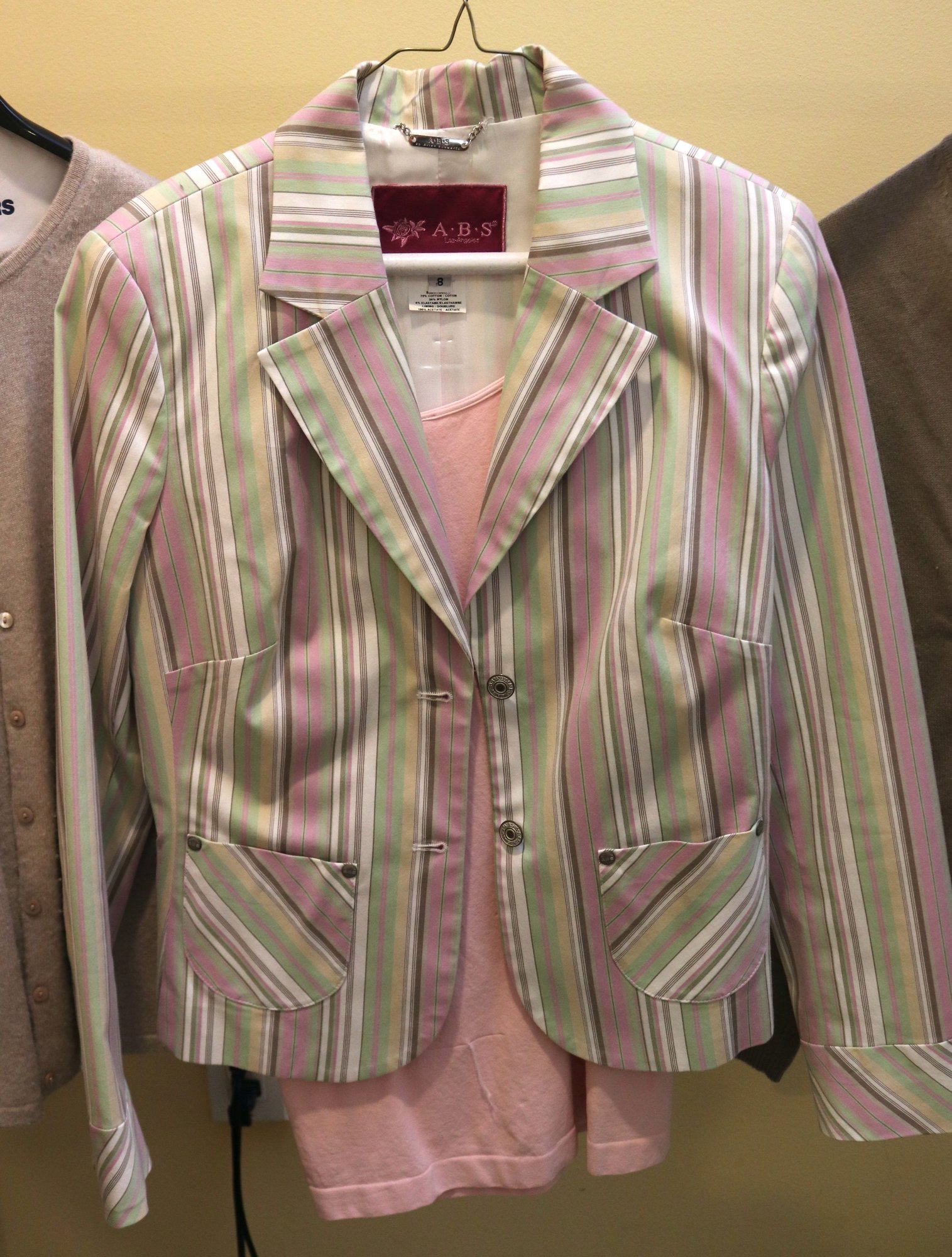 Cashmere twin set, cashmere Asian style sweater, ABS stripped blazer & tank top. Get ready for the autumn chill with these classic styles. All size S/P