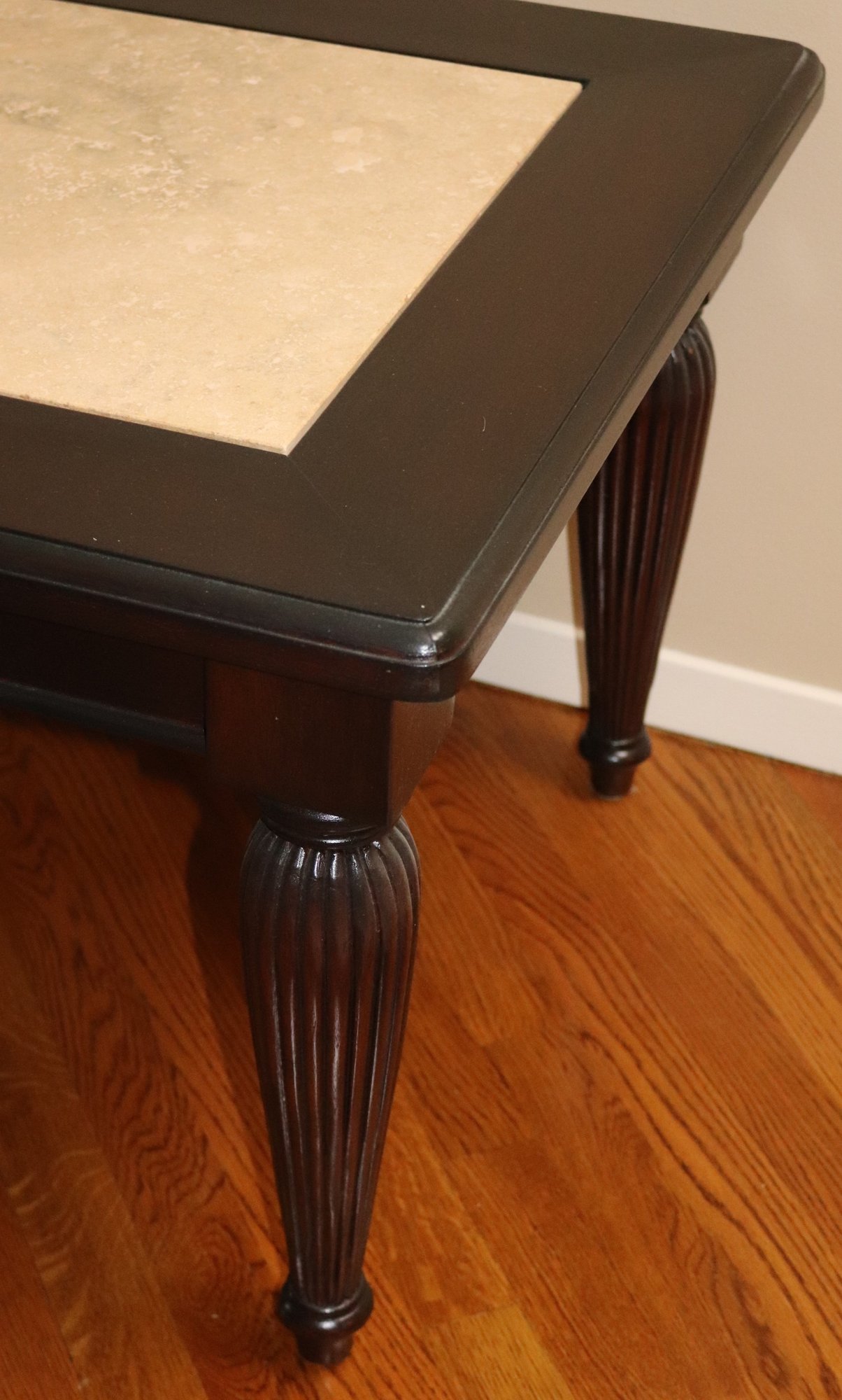 Century furniture side table with fluted legs & porcelain Tile center. Nice side table that will fit into contemporary or traditional décor. measuring 26” Sq. x 20” T