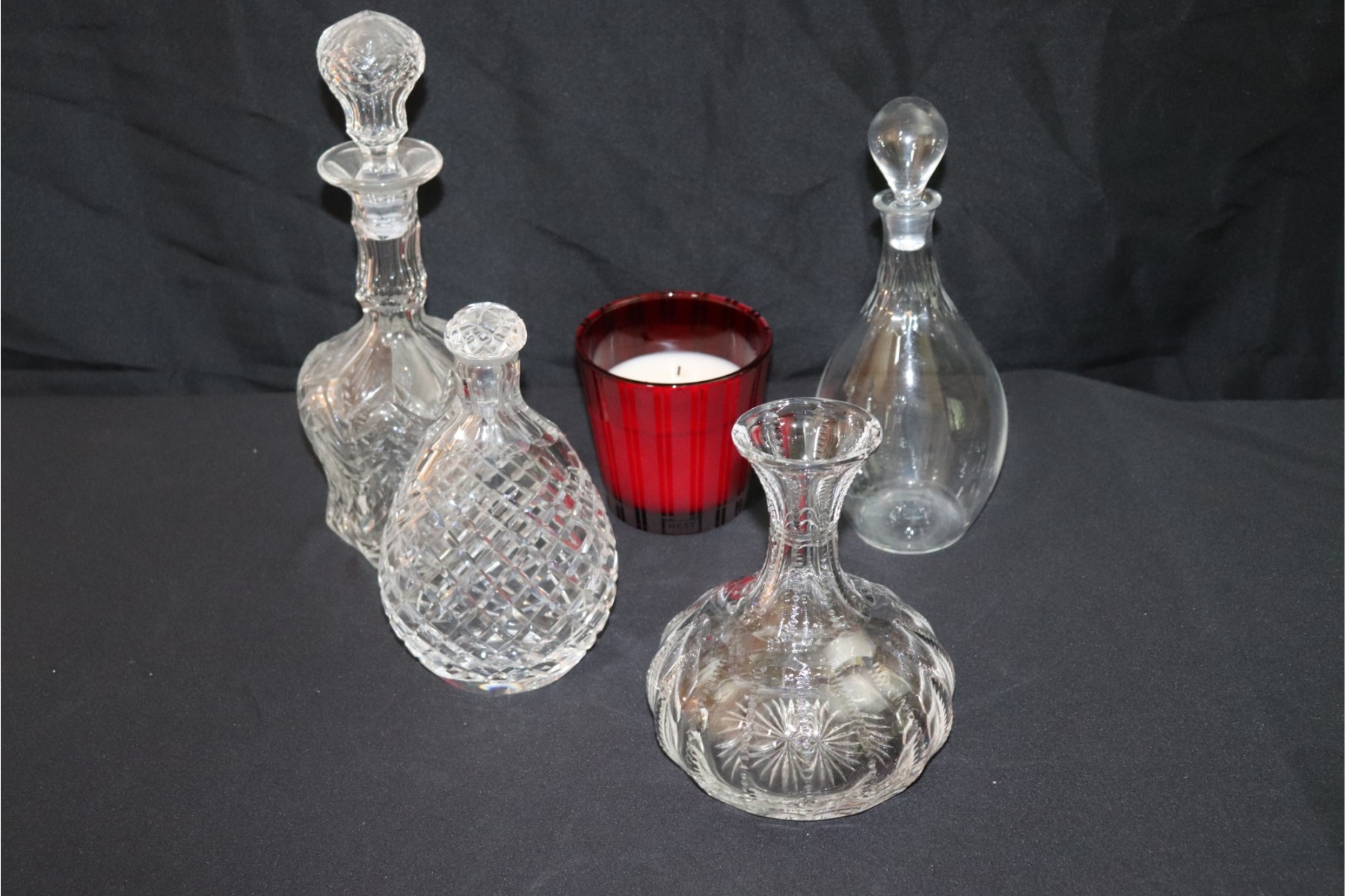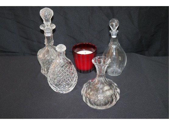 Collection Of Beautiful Decanters, Assorted Sizes With Decorative Scented Nest Candle.