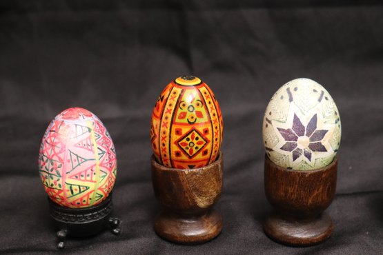 Includes assorted decorative hand painted wood eggs as pictured.