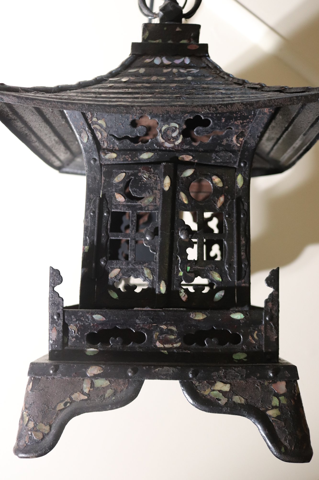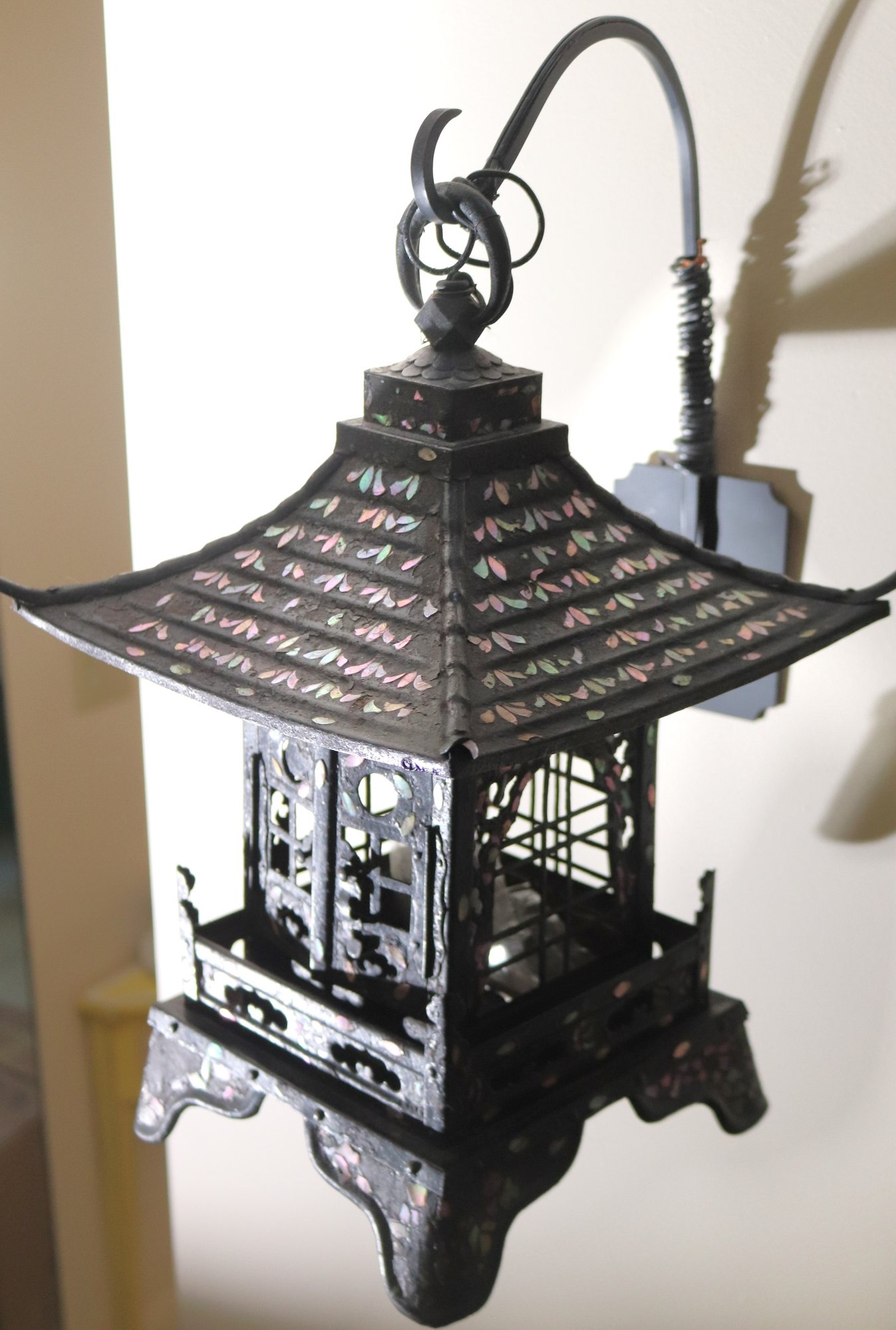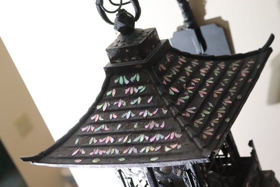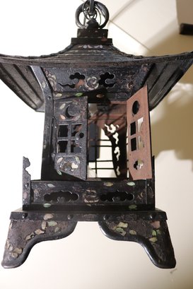 Electrified, pierced Metal Japanese pagoda lantern, with mother of