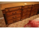 Empire Style Dresser With Blonde Wood And Banded Inlay- Measures Approximately 88” W X 24” D X 33” Tall. Nice Patterns Throughout.