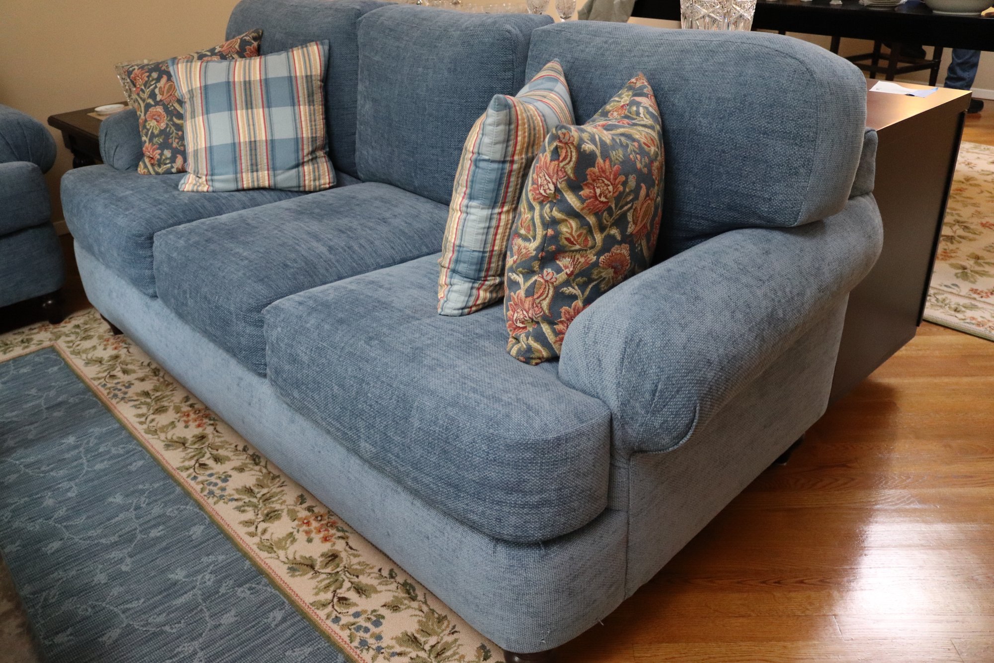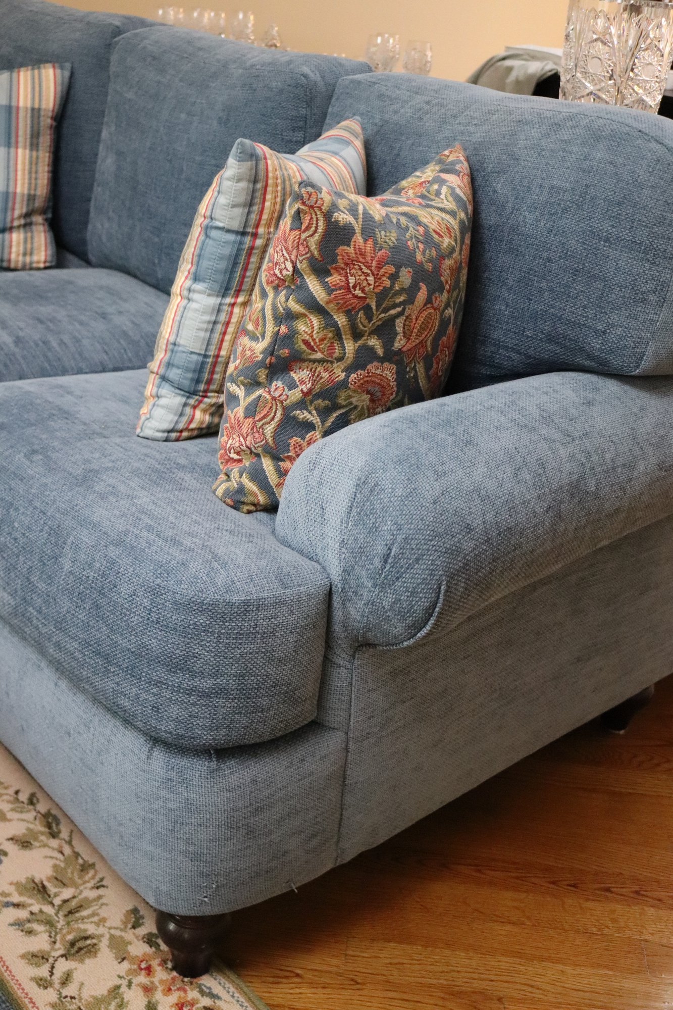 accompaniment to the slightly larger sofa with the same fabric. Both are in great