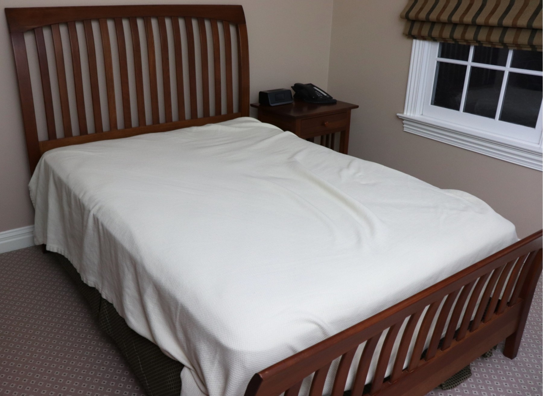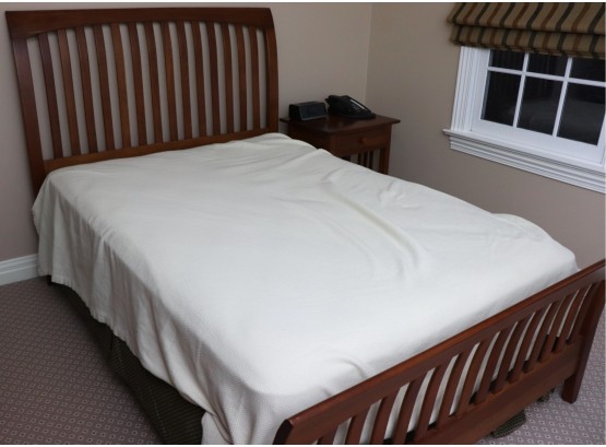 Ethan Allen Shaker Style Full Size Bedframe, Nightstand & Tall Chest with 6 Drawers. Mattress, Bedding and Accessories NOT included. Made in USA. In very good condition with minor wear. Approximate Measurements: Bedframe: 57”W x 87”D x 52.5”H, Nightstand: 23”W x 17”D x 28”H, Chest: 56”W x 19”D x 50”H