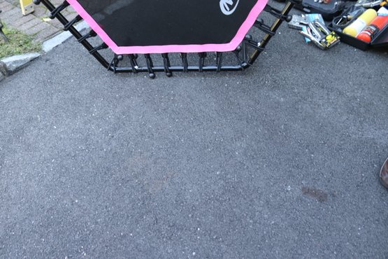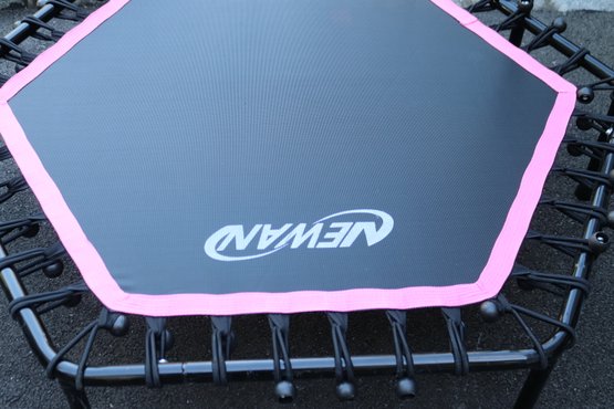 Newman hexagonal shaped trampoline with adjustable/detachable handle bar accessory, this