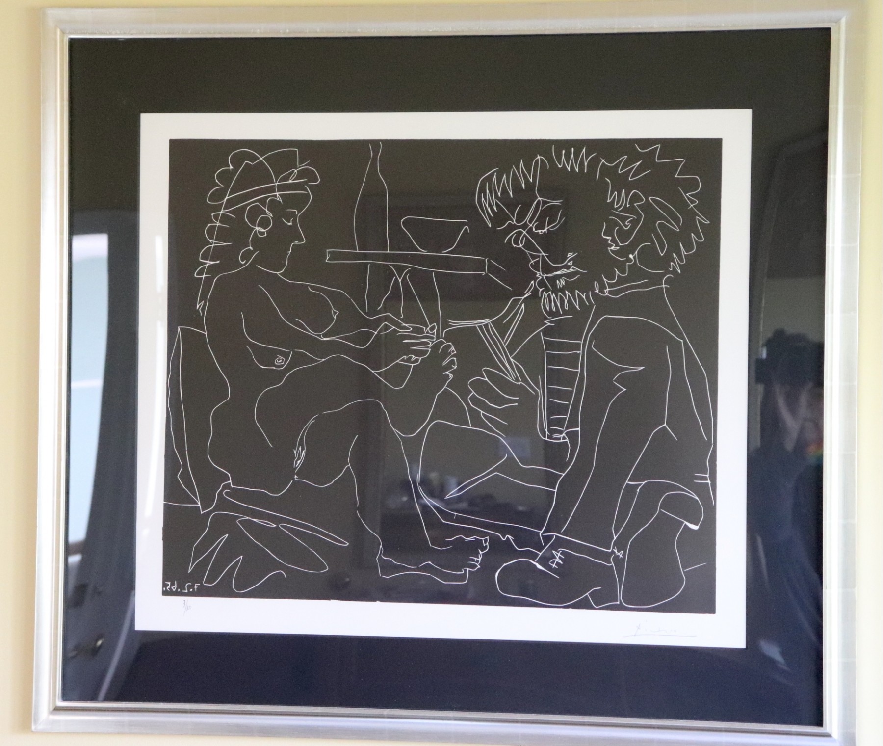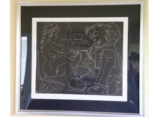 Fabulous Pablo Picasso signed & numbered linocut print, on Arches paper, with full margins. Signed in pencil, lower right, and numbered 3/160, lower left. Professionally framed in a silver leaf frame. Authentication paperwork can be provided. Appraised Sept. 2021 by Gurrs John. Frame Measures 37” L x 33” T, Artwork 28” L x 23” T