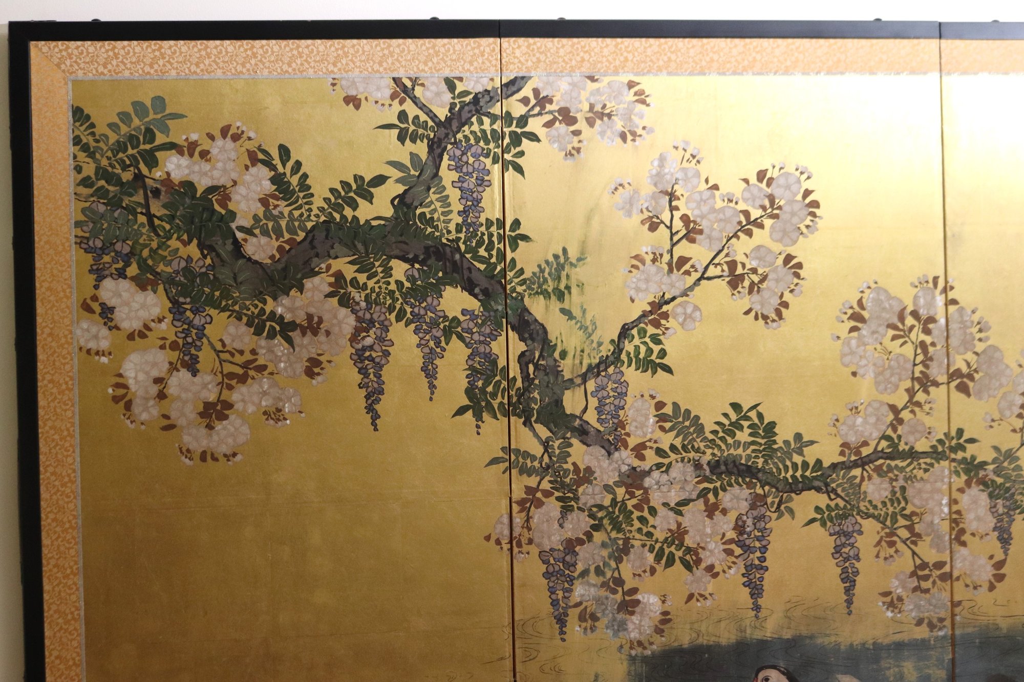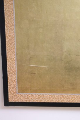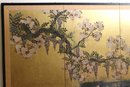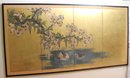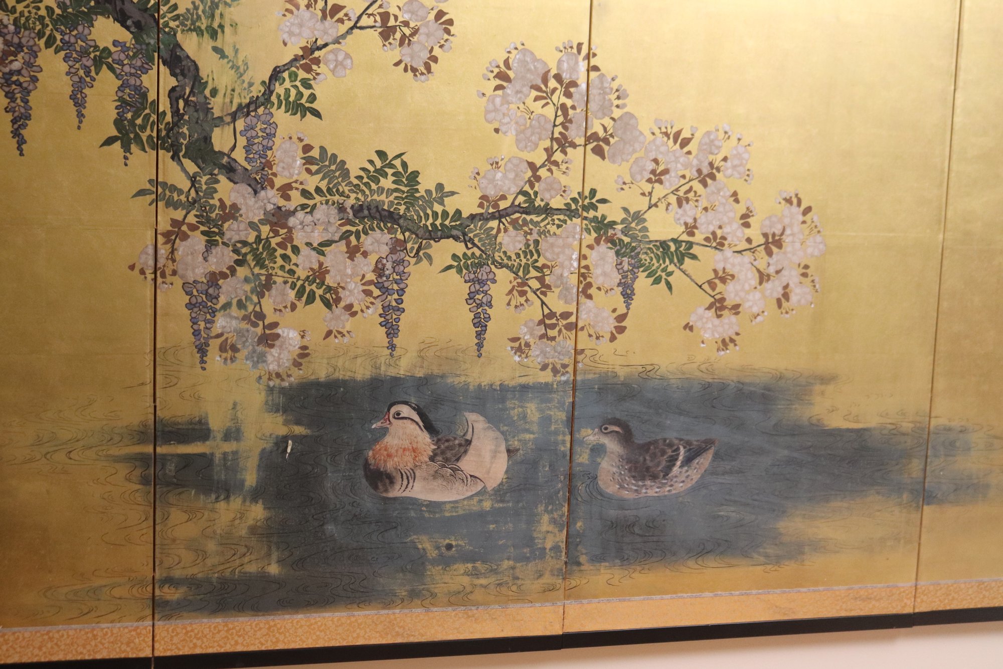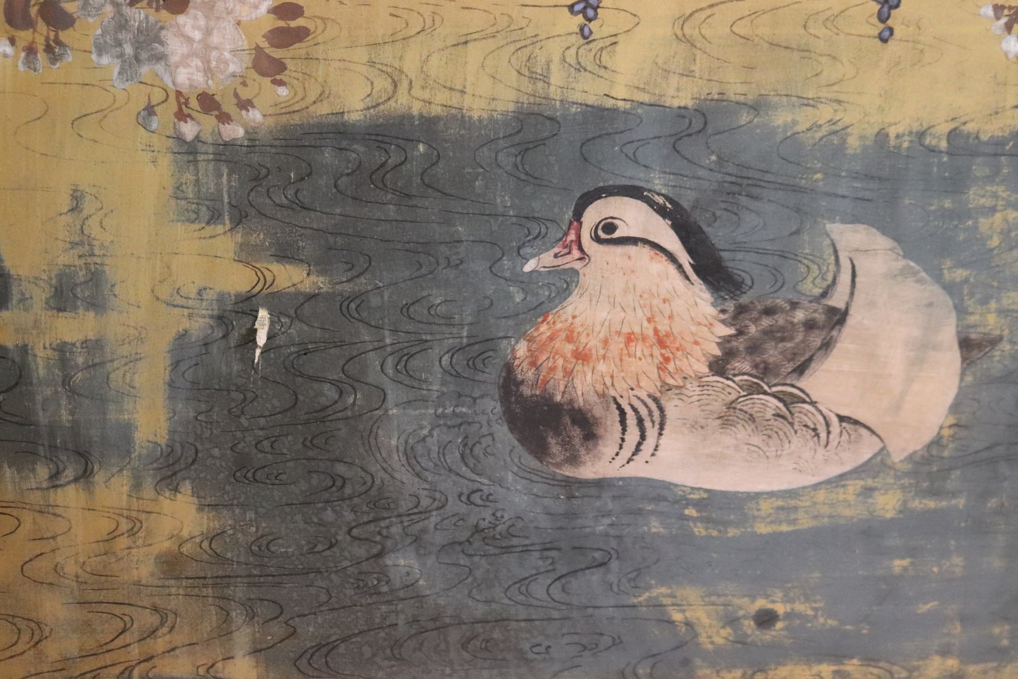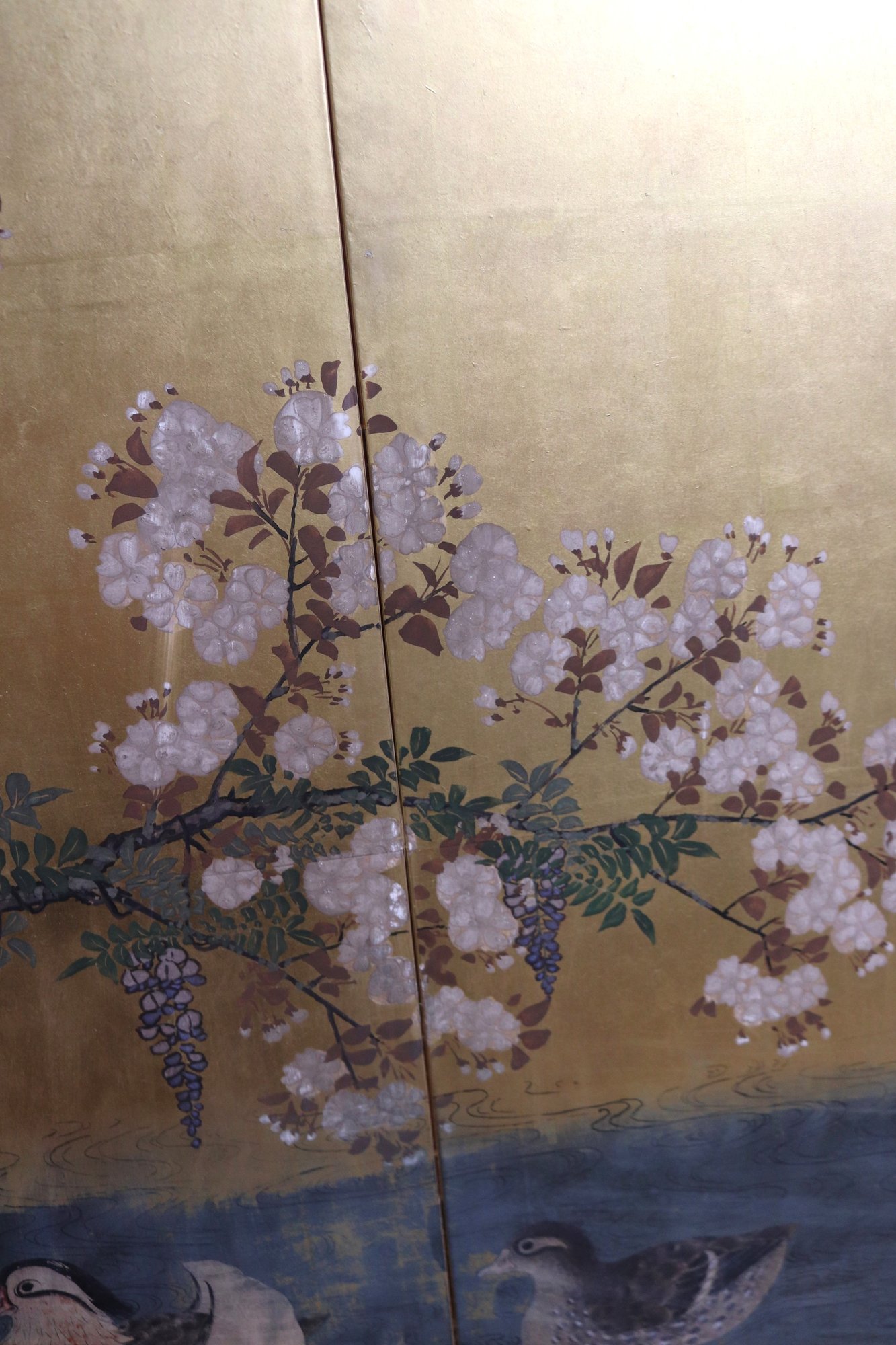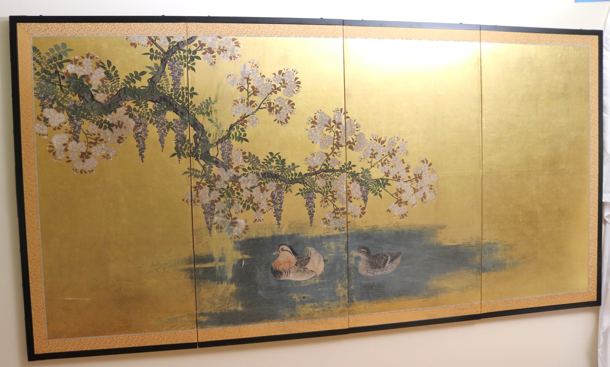 Four panel gold leaf Japanese wall hung screen, with hand painted ducks and