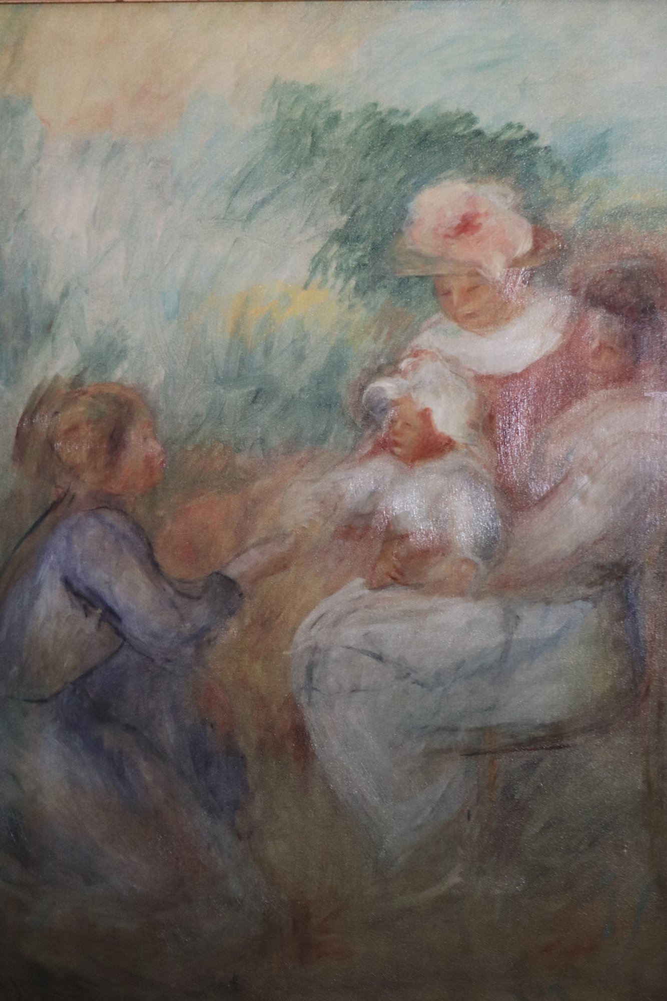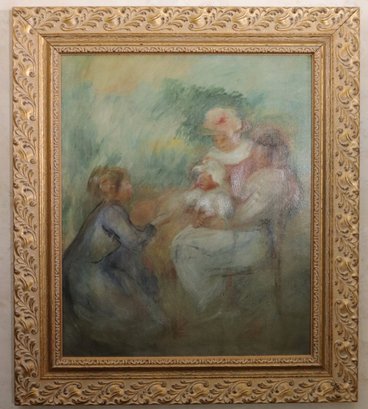 Framed Impressionist style Giclee of a mother with child measures approximately 27” w x 31” tall in ornate frame as pictured.