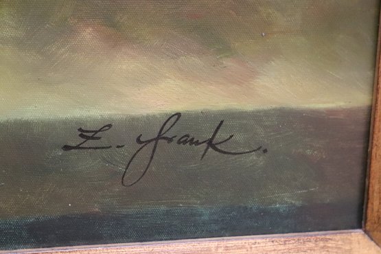 Frank in an ornate carved wood frame that measures approximately 43.5” w x 31.5” tall as pictured.