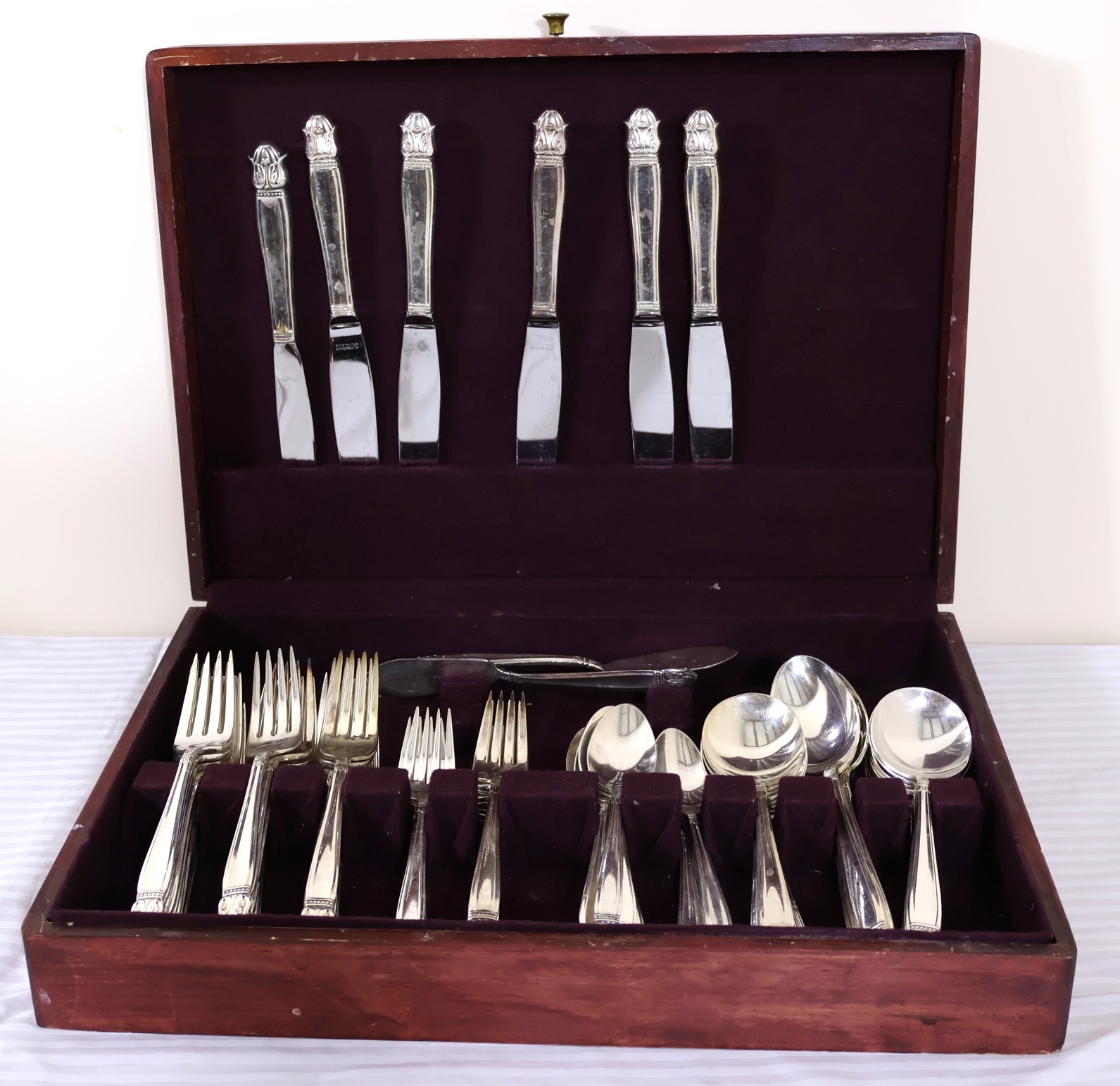 Homes and Edwards Danish Princess Flatware service in original wooden box. Large Set with