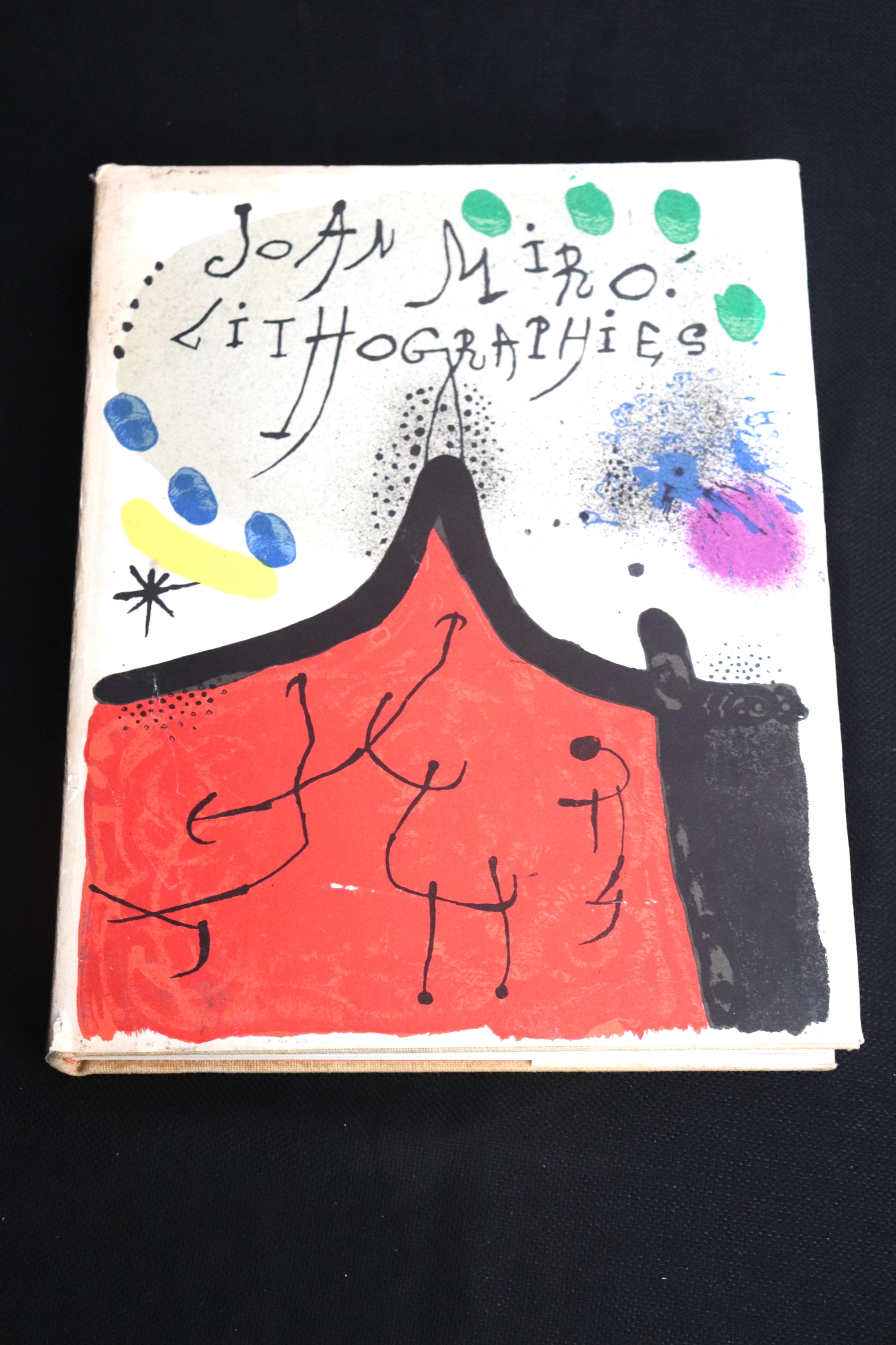 Joan Miro Lithographies, 1972. This edition is #1160 out of 5000, with many colored & black & white plates of the artist’s work. Book has some slight discoloration on edges, but interior is not affected. Mourlot annotated catalog. Book includes original unsigned lithographs as noted. Book measures 13” T