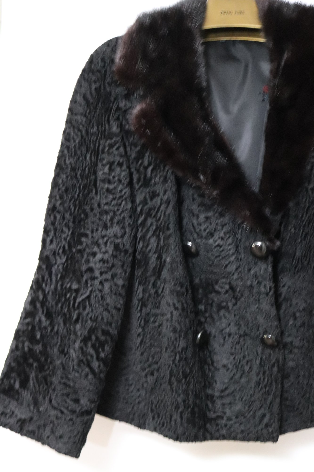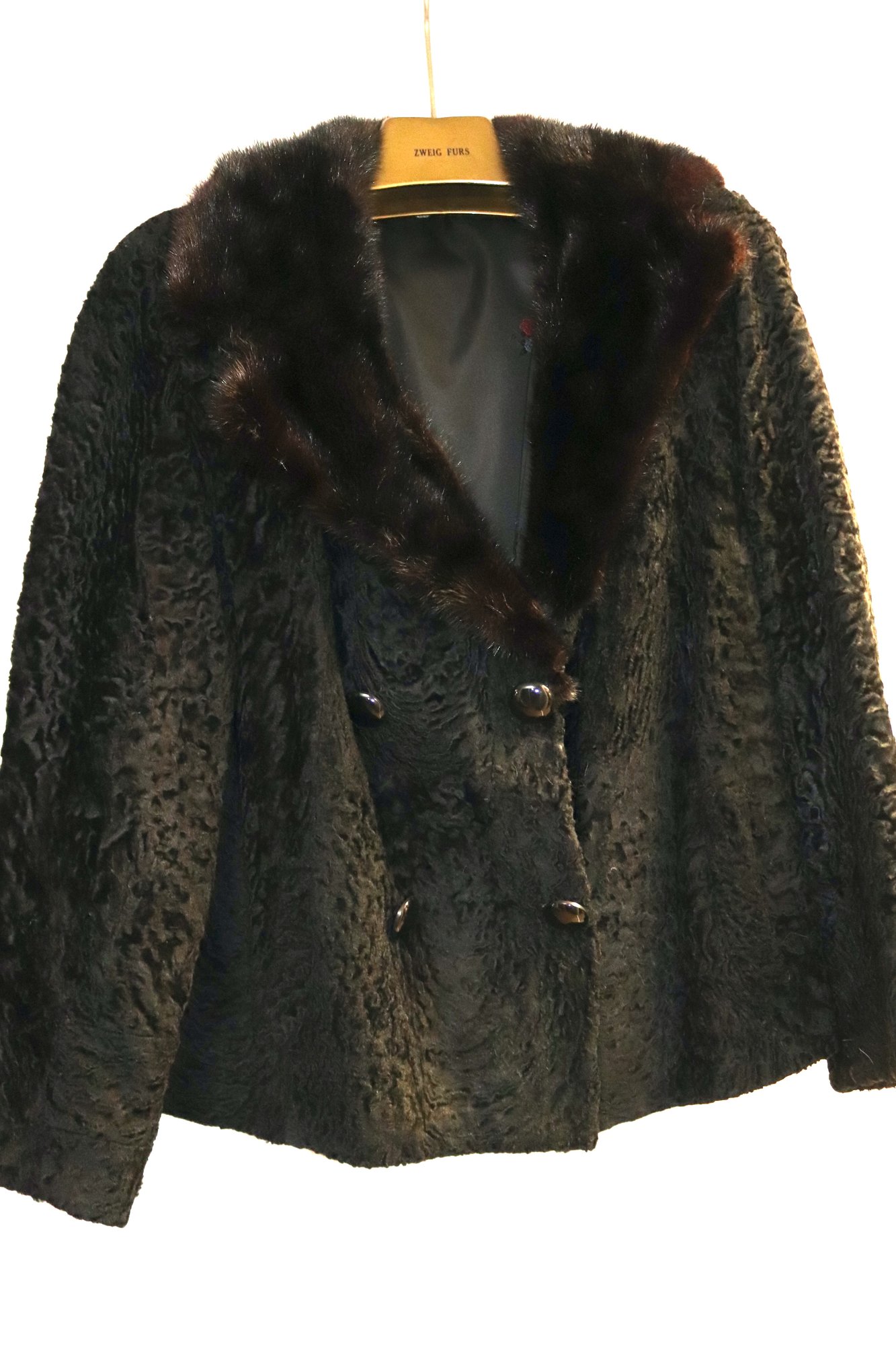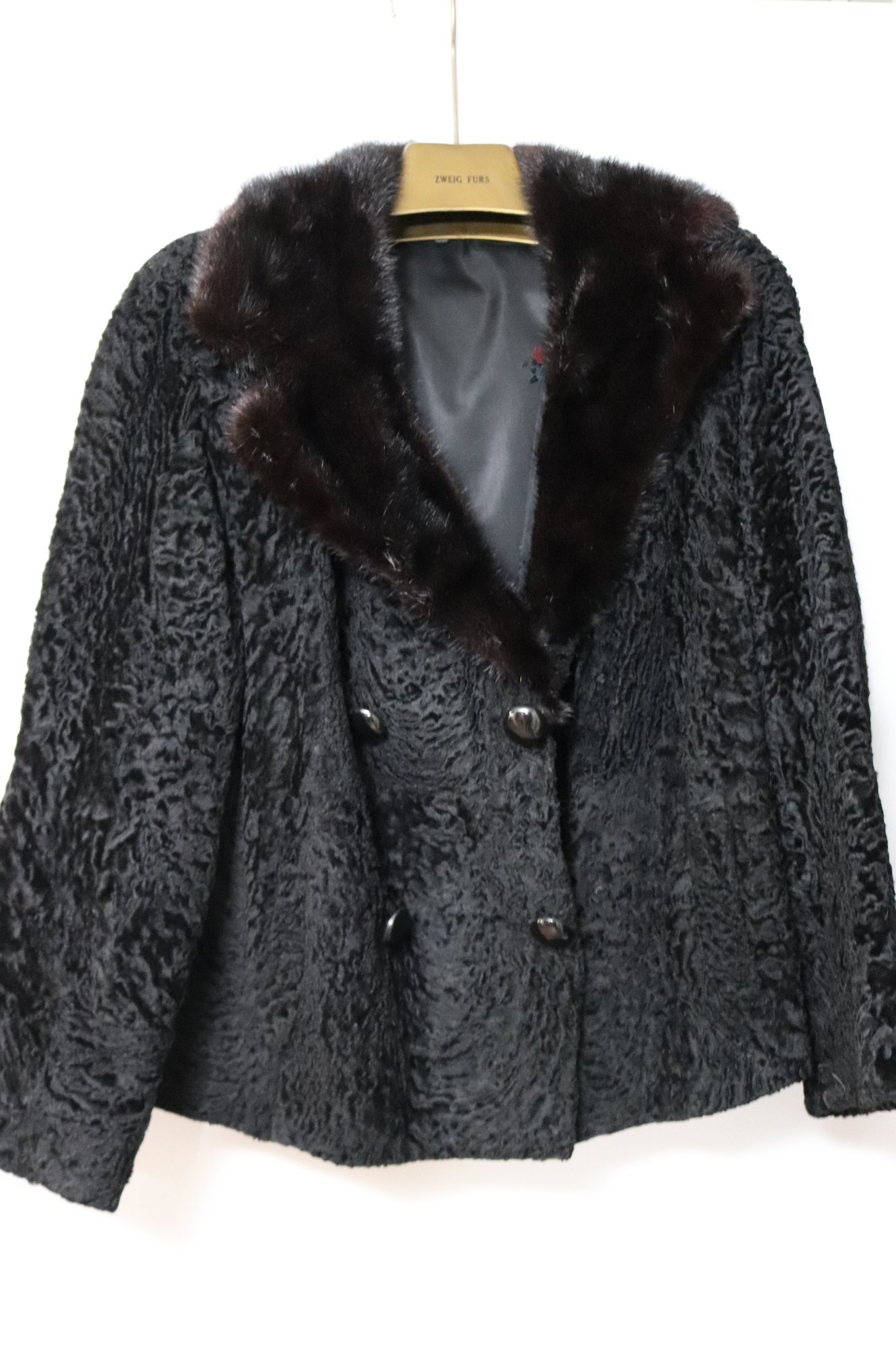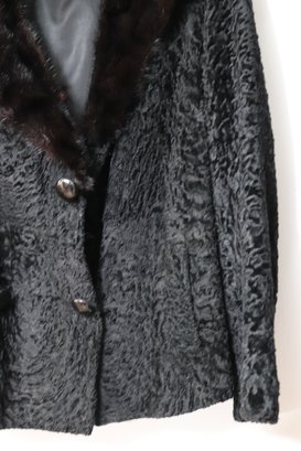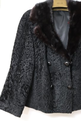 Ladies Short Persian lamb jacket with mink collar & silk lining. Size M approx.23”’L