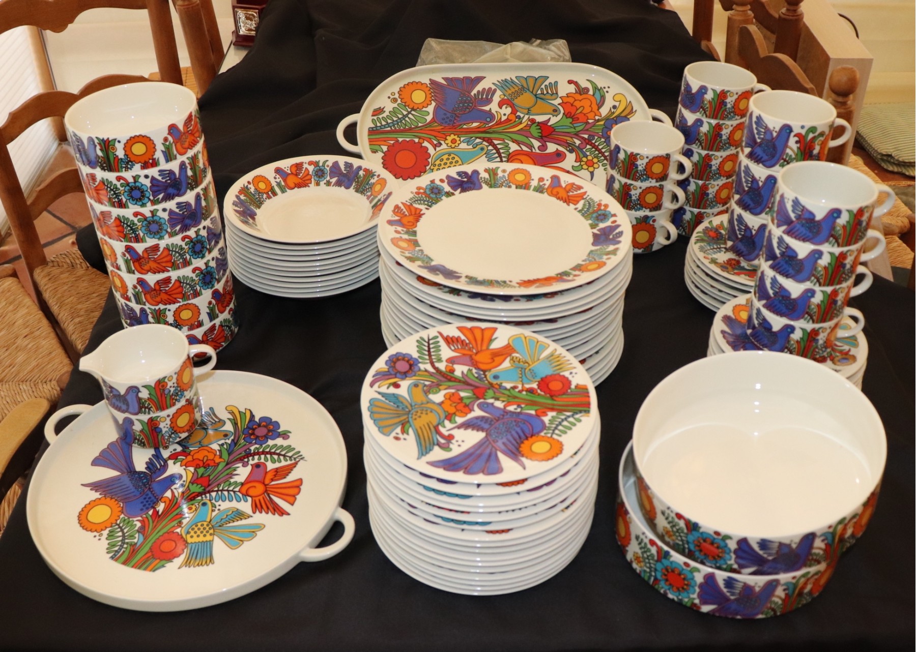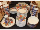 Large Lot of Villeroy & Boch Acapulco Pattern Porcelain China Beautiful Design with Bright Colors, Includes Large Serving Tray, Large Platter, 2 Large Serving Bowls, 15 Dinner Plates, 16 Dessert Plates, 11 Soup Bowls, 7 Salad Bowls, 4 Large Coffee Cups, 11 Small Coffee Cups, 10 Small Saucers, 7 Large Saucers, Sugar and Creamer, Mixed Set