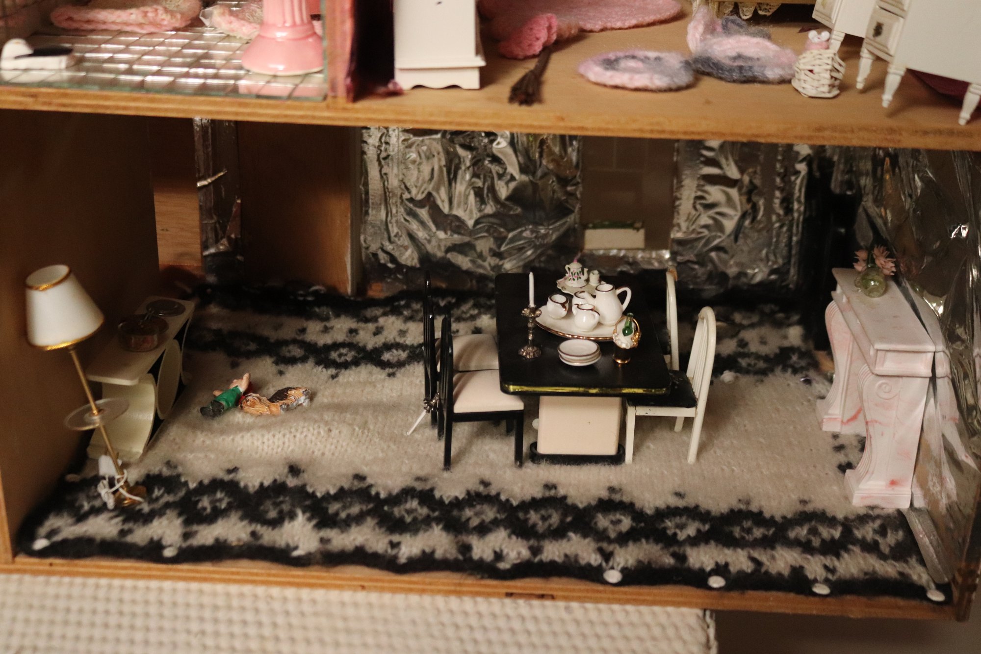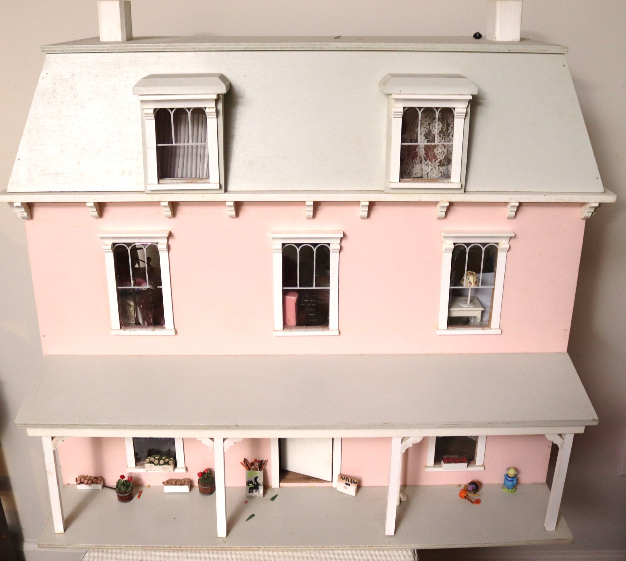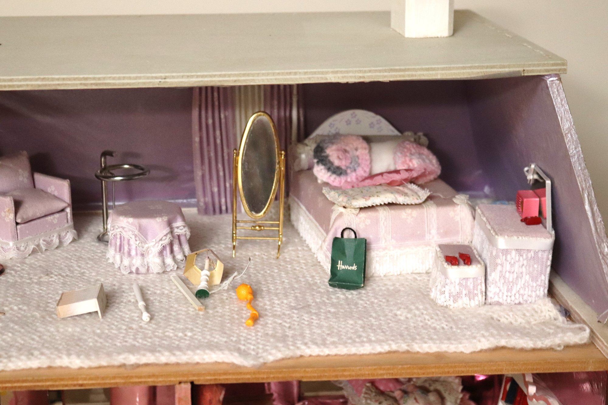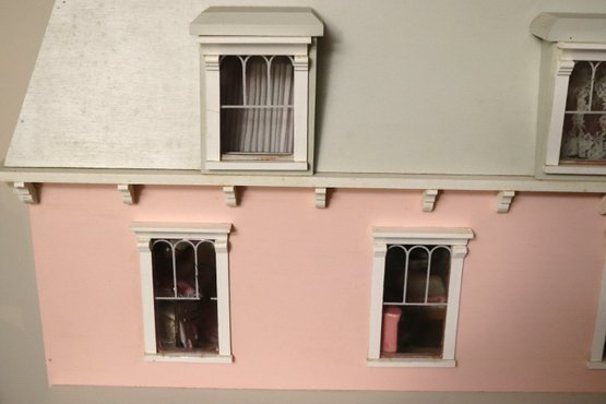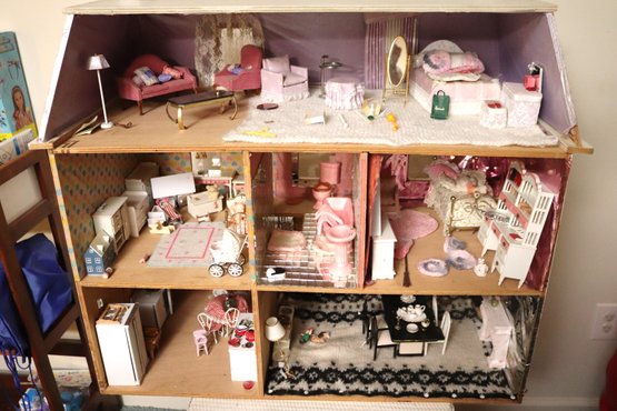Large Victorian style dollhouse with 6 rooms full of doll house furniture.