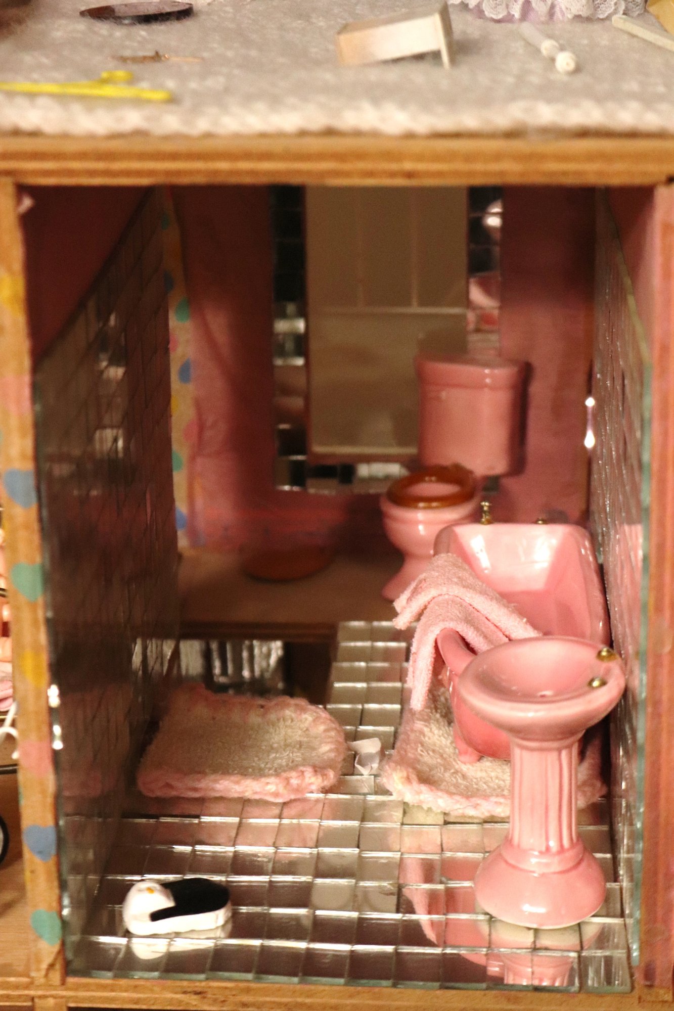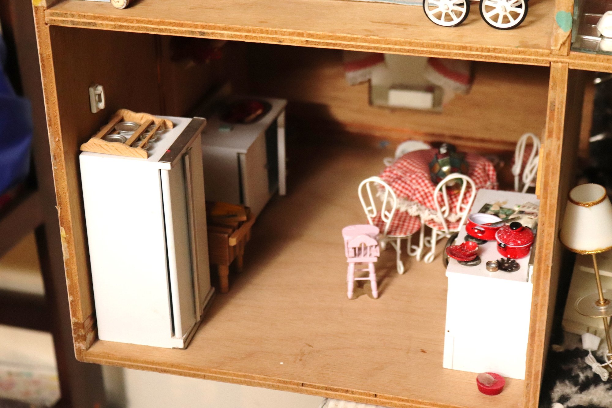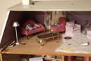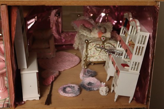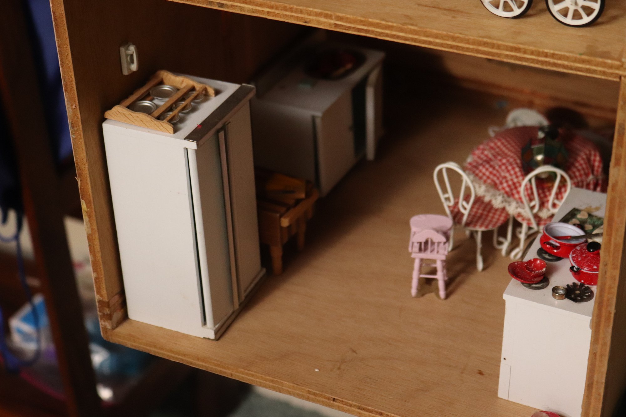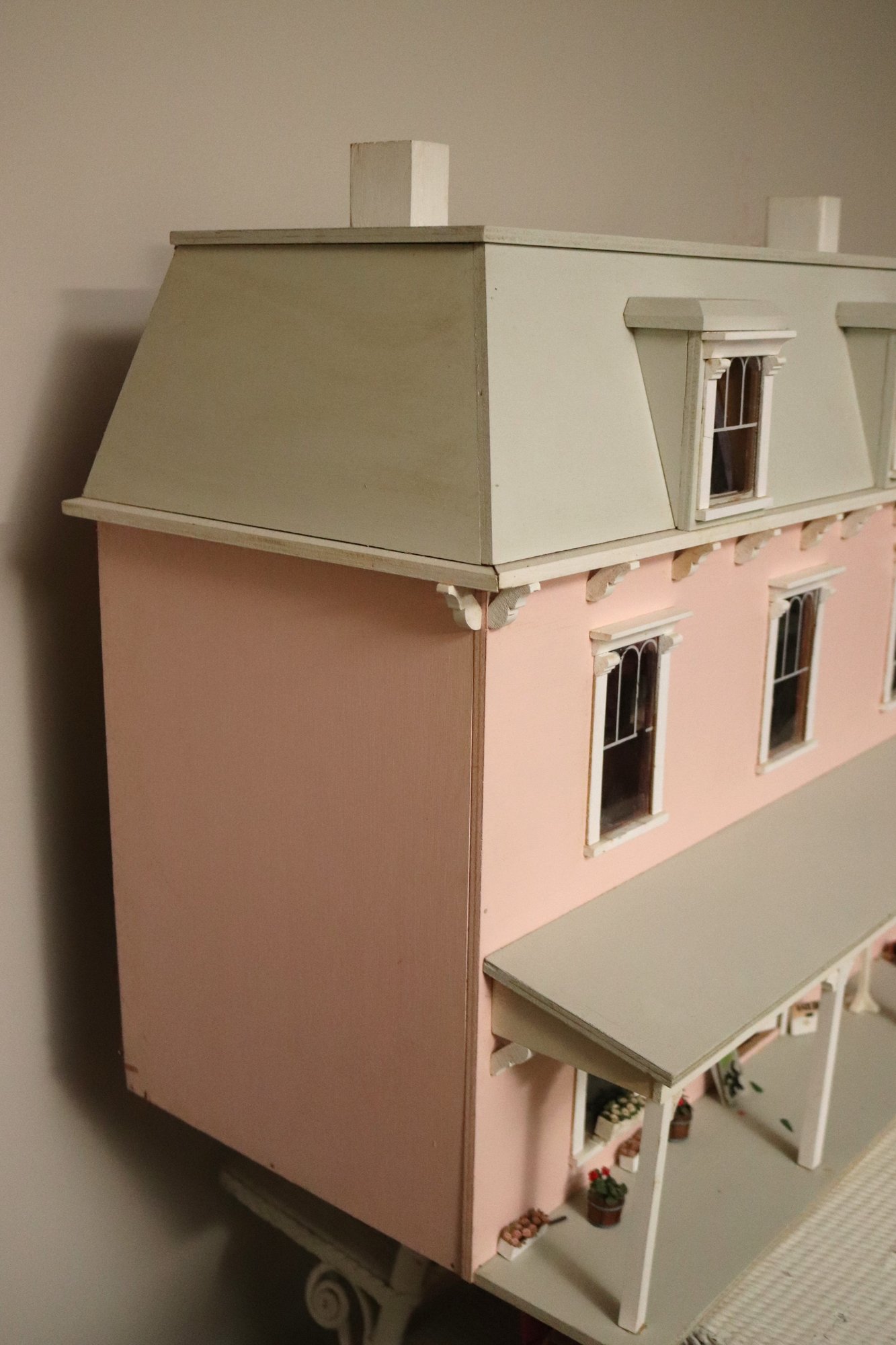 Large Victorian style dollhouse with 6 rooms full of doll house furniture.