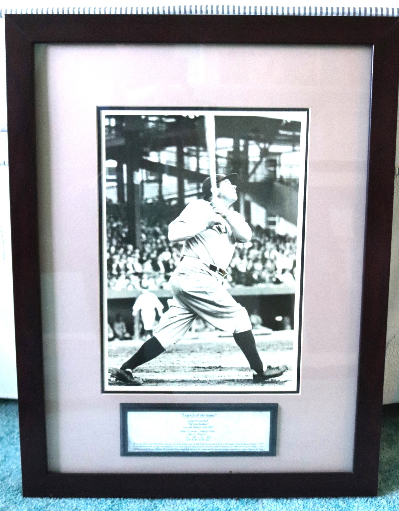“Legends of the game” Babe Ruth Wall Décor measures approximately 20” w x 26” tall in the frame.