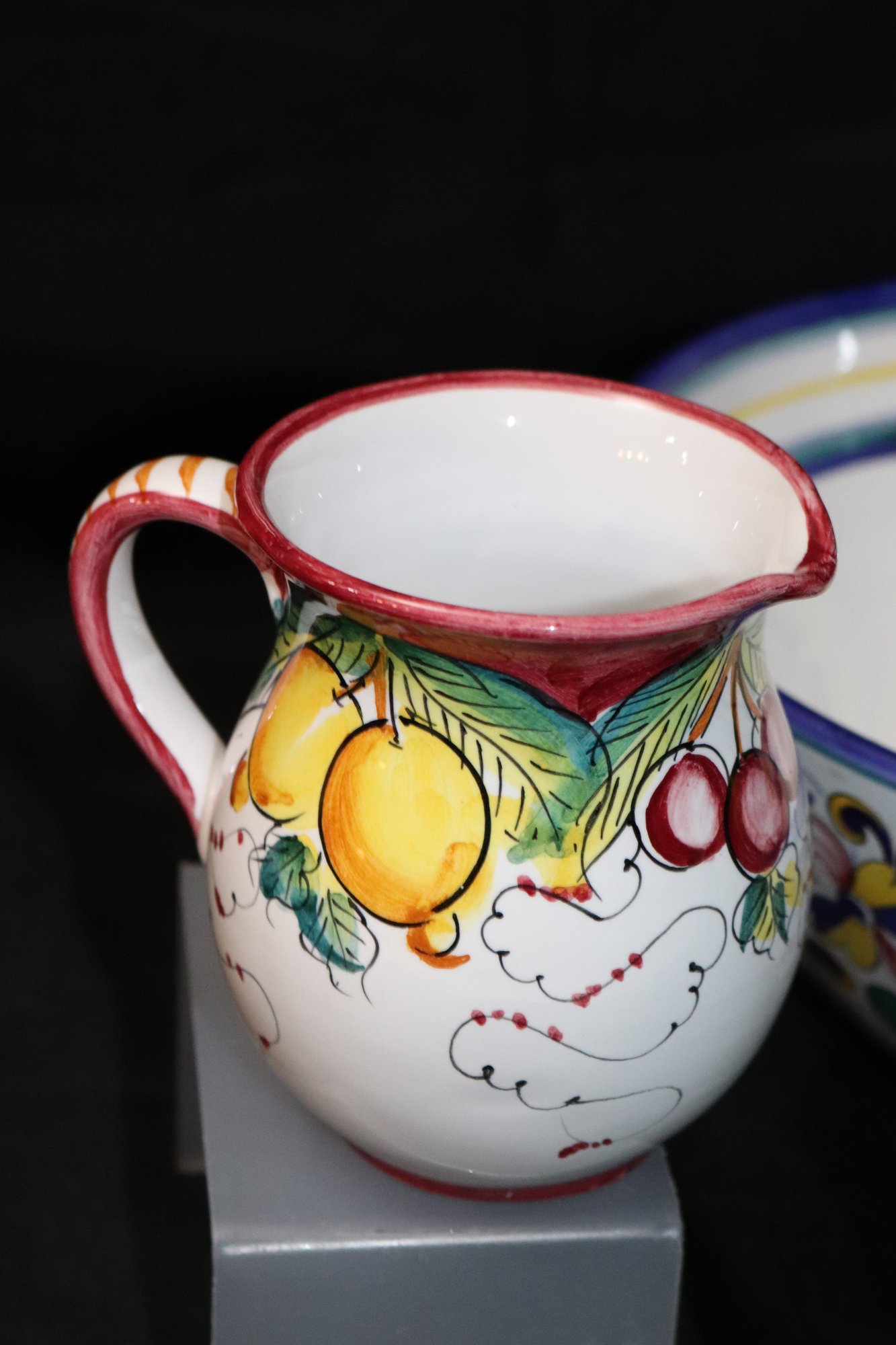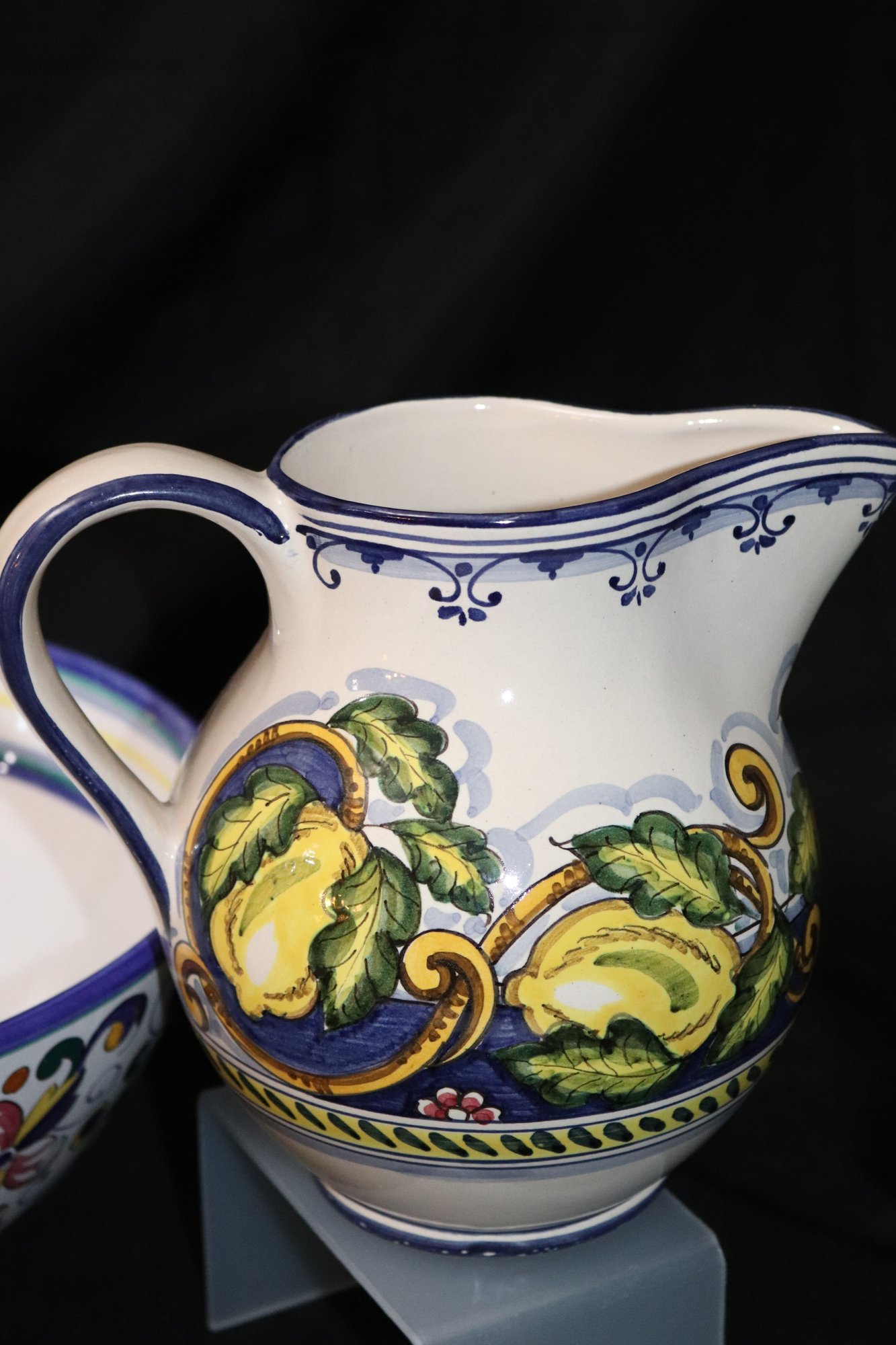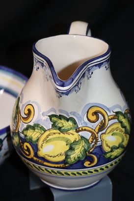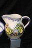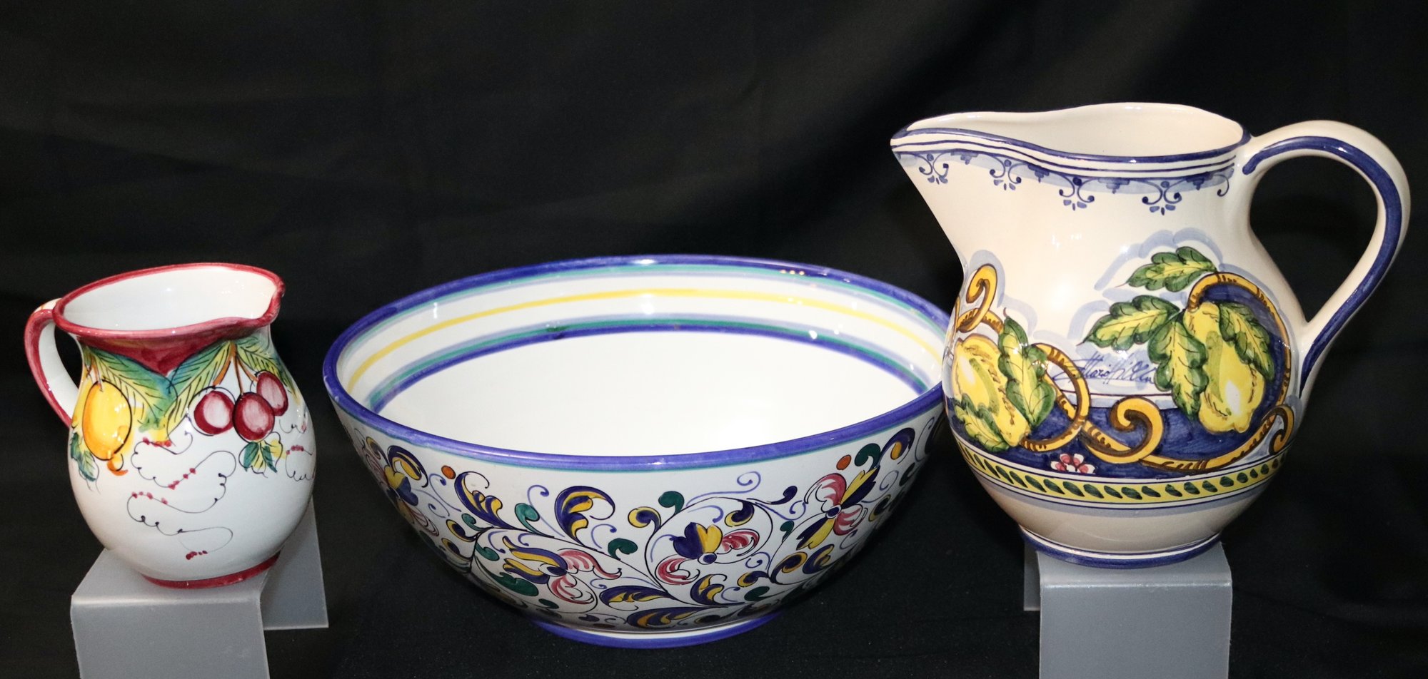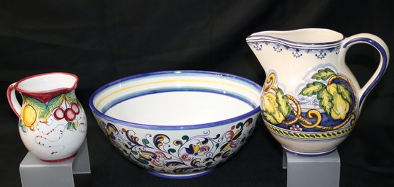 Bowl is 12” Dia. x 5” T, pitchers’ range in size from 5”-7.5” T