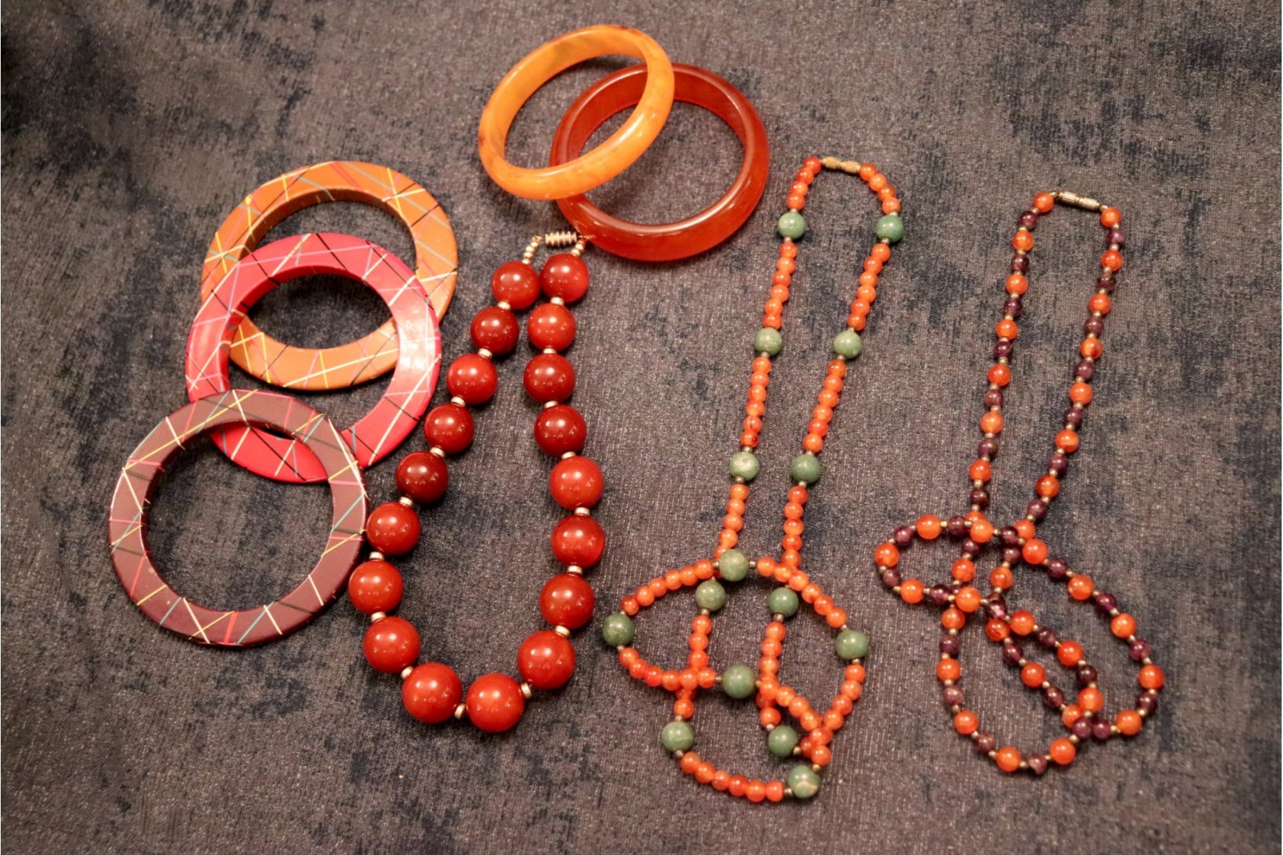 bracelets interior 2.5" x 2 mulitcolored 14L" x stone necklace 7L"