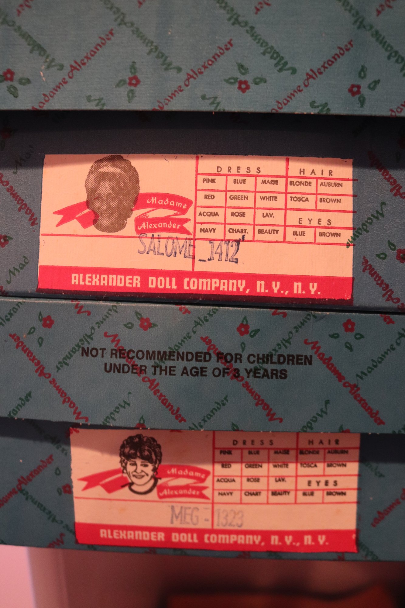 Lot of 4 Madame Alexander dolls with boxes, Salome, and Romeo