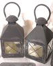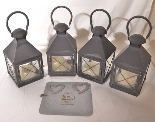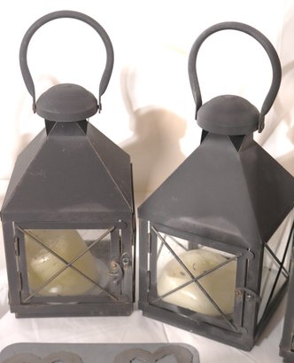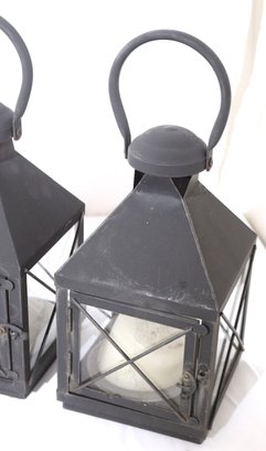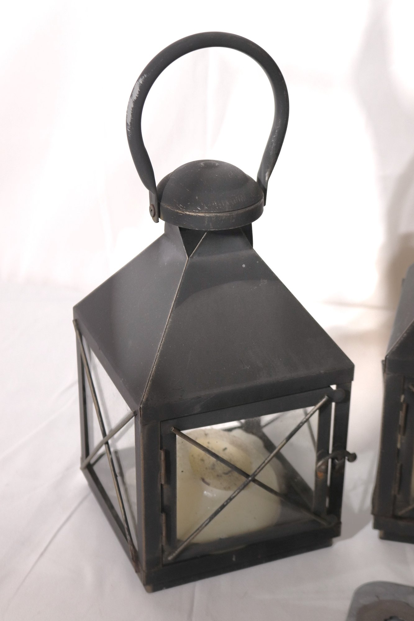 Lot of 4 metal and glass lanterns with doors. Can be used with
