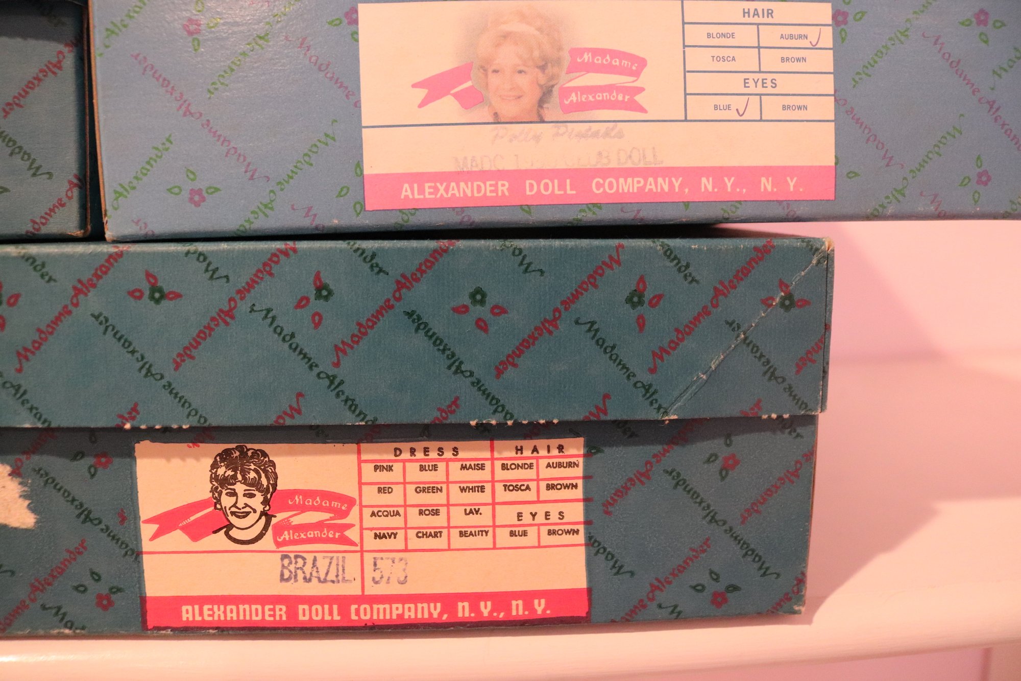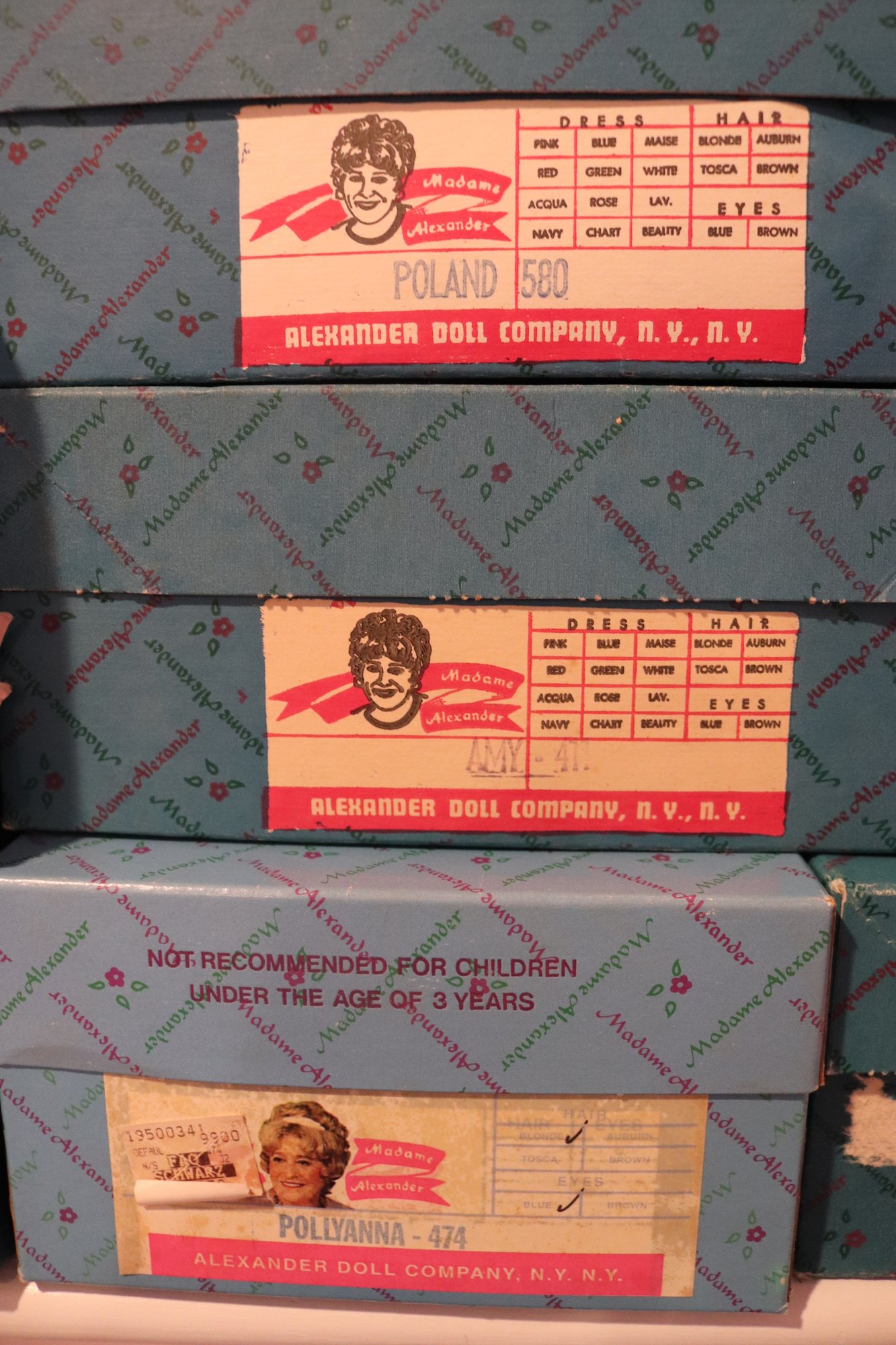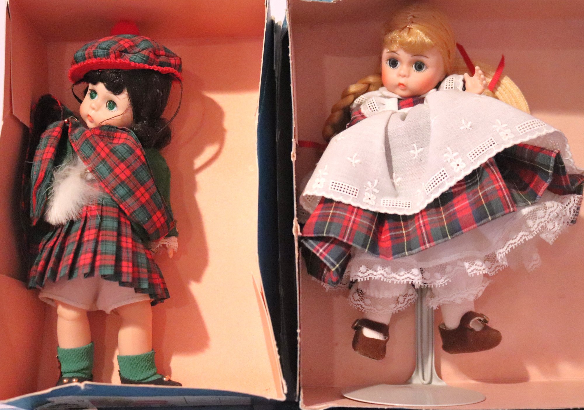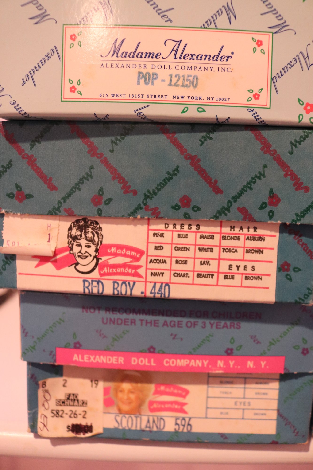 Lot of 8 Madame Alexander dolls with boxes, Amy, Brazil, Poland,