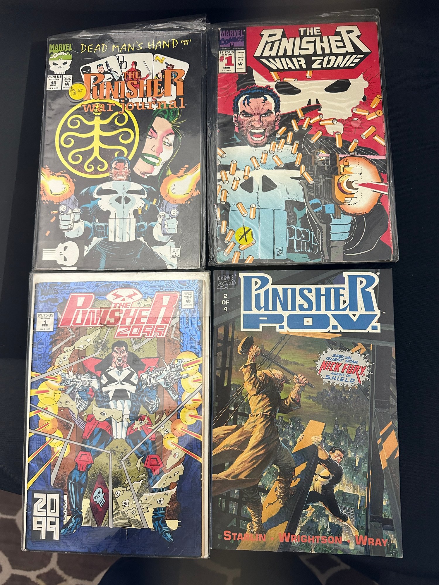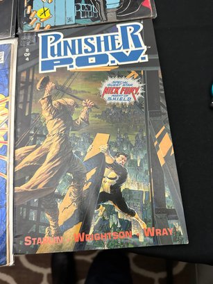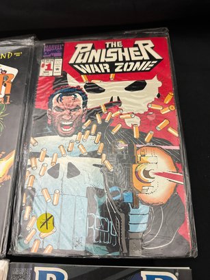 The Punisher Vintage -2099, 1 Feb. 1993, P.O.V Special Guest Star: Nick Fury Agent of S.H.I.E.L.D. 2 of 4, 1991; War Zone 1 Mar 1992; War Journal 45 Aug. 1992; War Journal 43 June 1992.3 comics are in plastic sleeves.