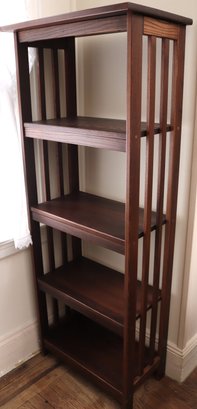 Mission style Wood shelf measures approximately 23” w x 14” d x 60” tall.