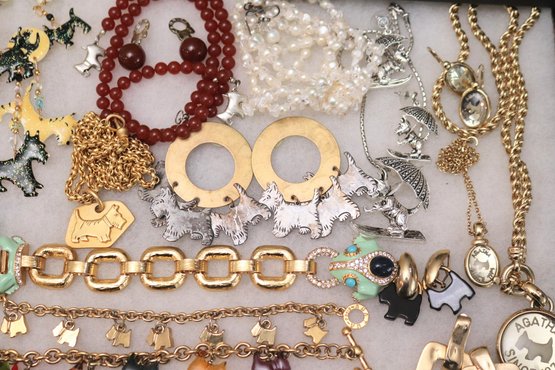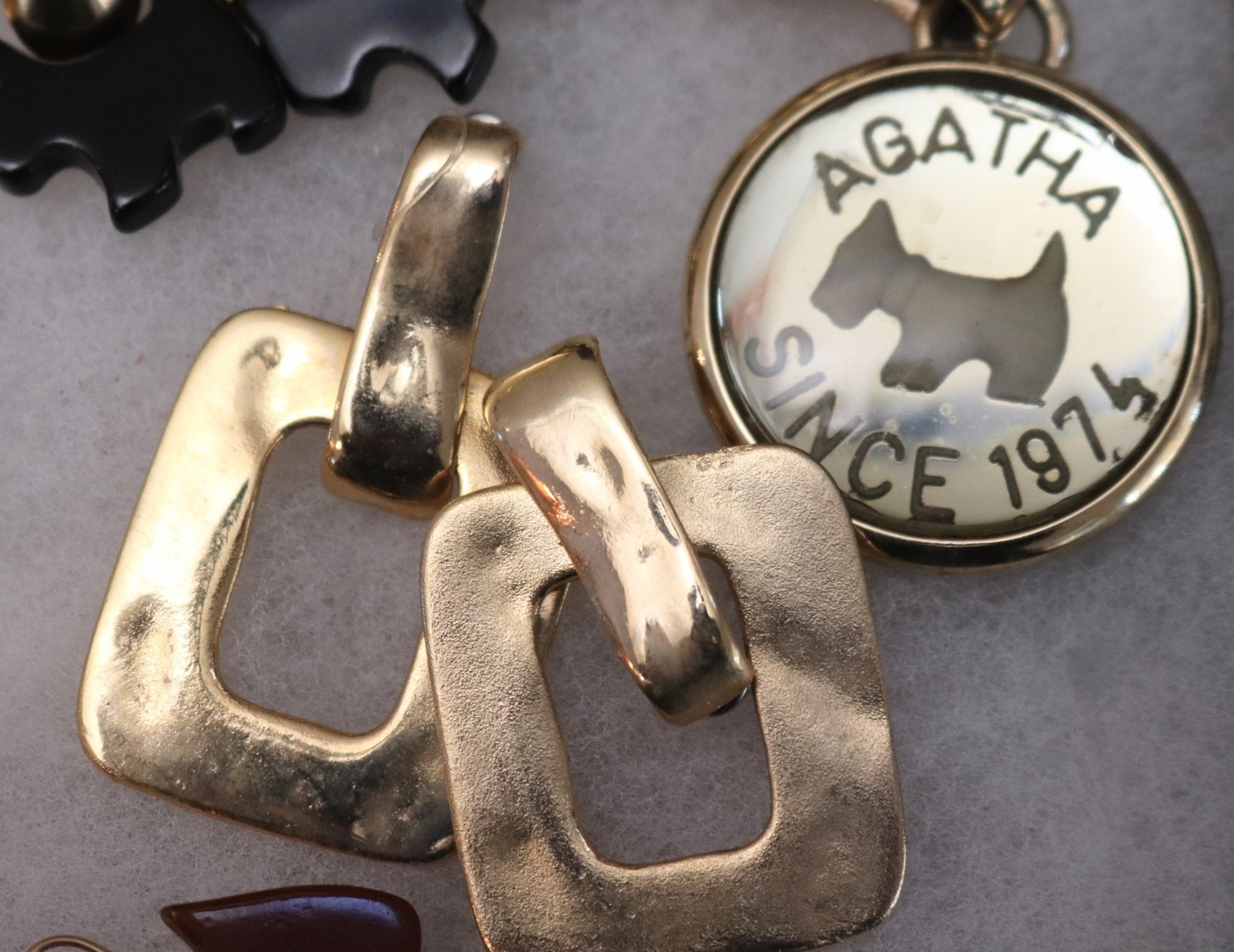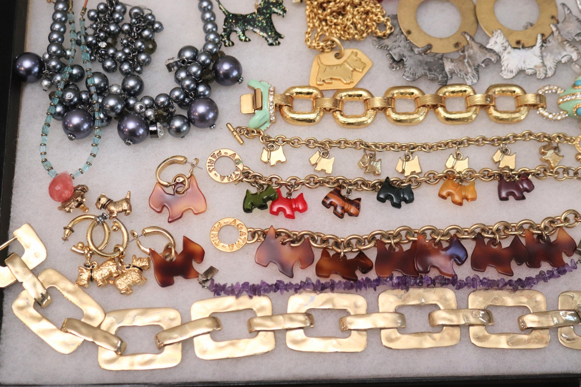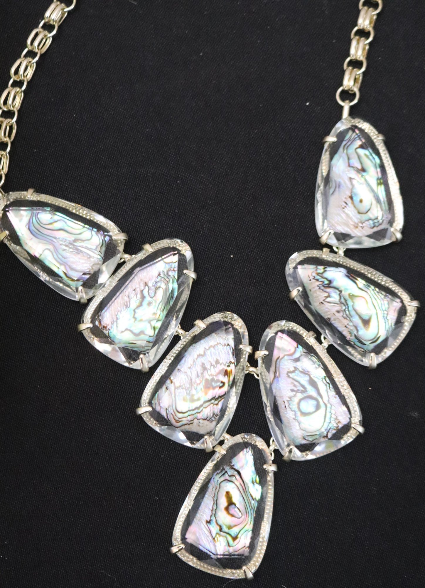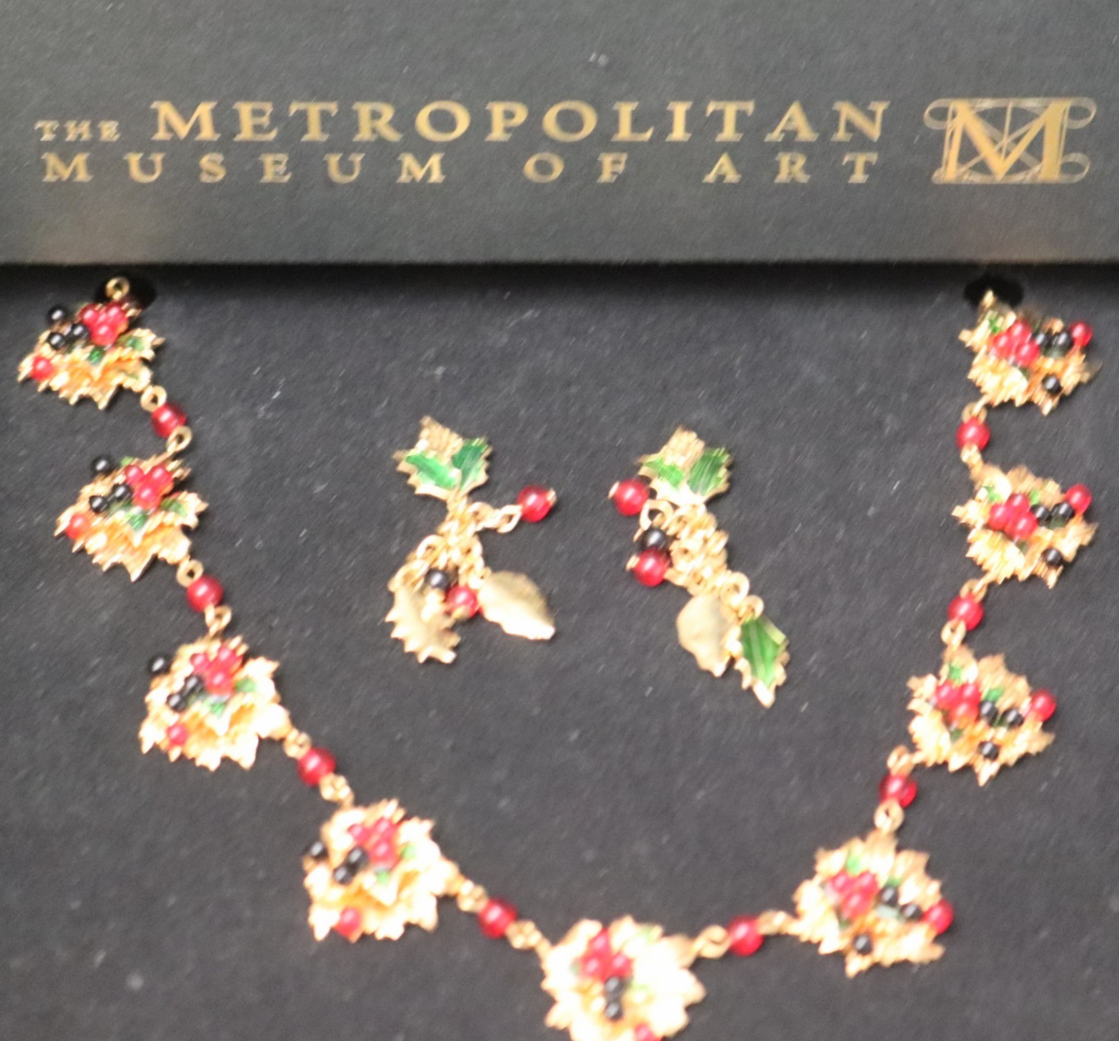 This lot of mixed quality fashion jewelry includes items by Kendra Scott, Lunch at the Ritz, Agatha, J.Crew, Holly Yashi and Susan Richardson. The necklace and earrings set in the Metropolitan Museum of Art Box are not marked MMA, they were simply placed in that box. All pieces are in working condition, some show light age-related wear.