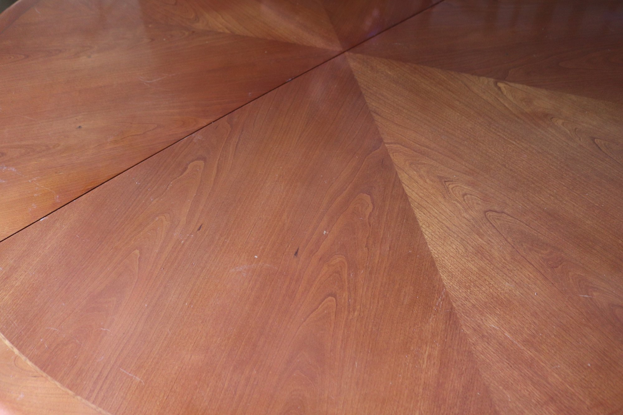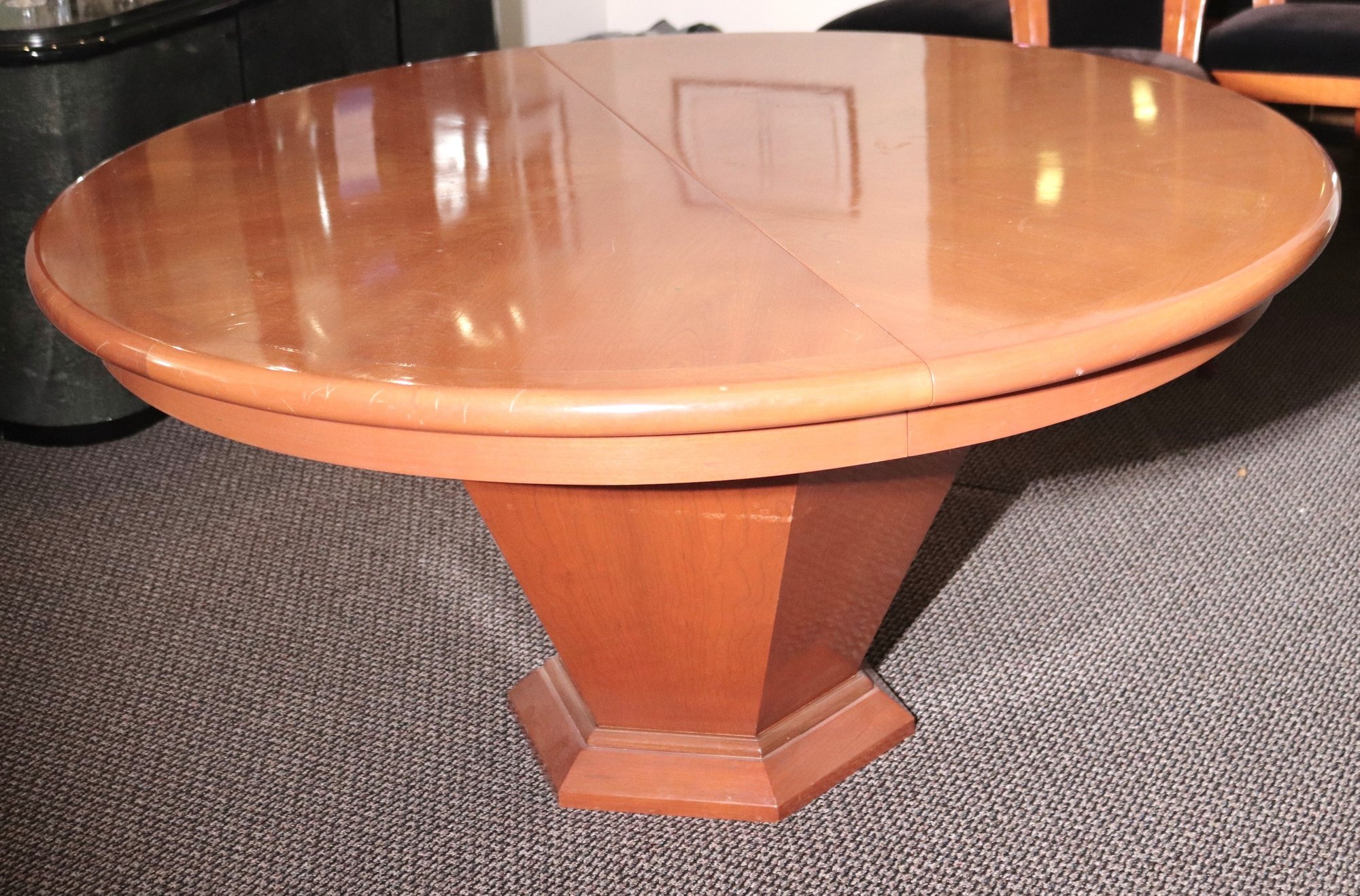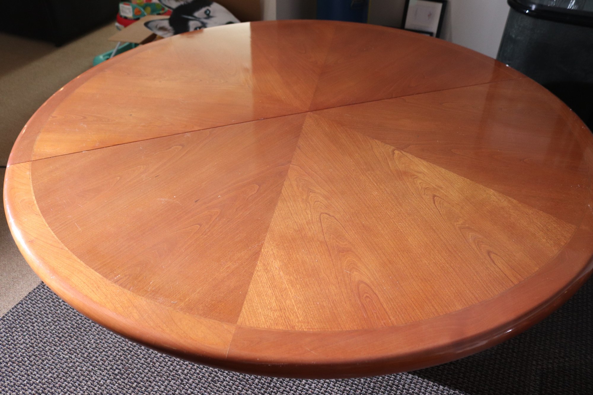 Modern Round dining table measures approximately 60” diameter x 30” tall. Item shows age-related wear as pictured.