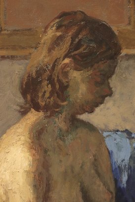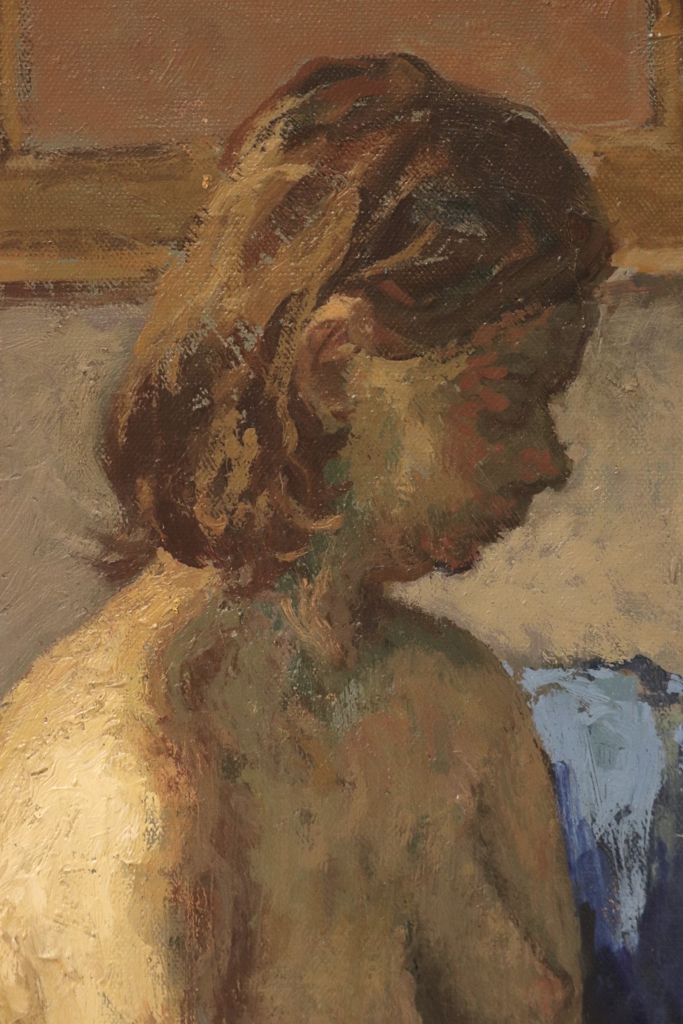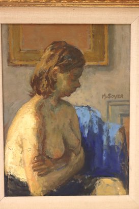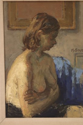 Moses Soyer oil on canvas painting of seated nude in giltwood frame. Moses
