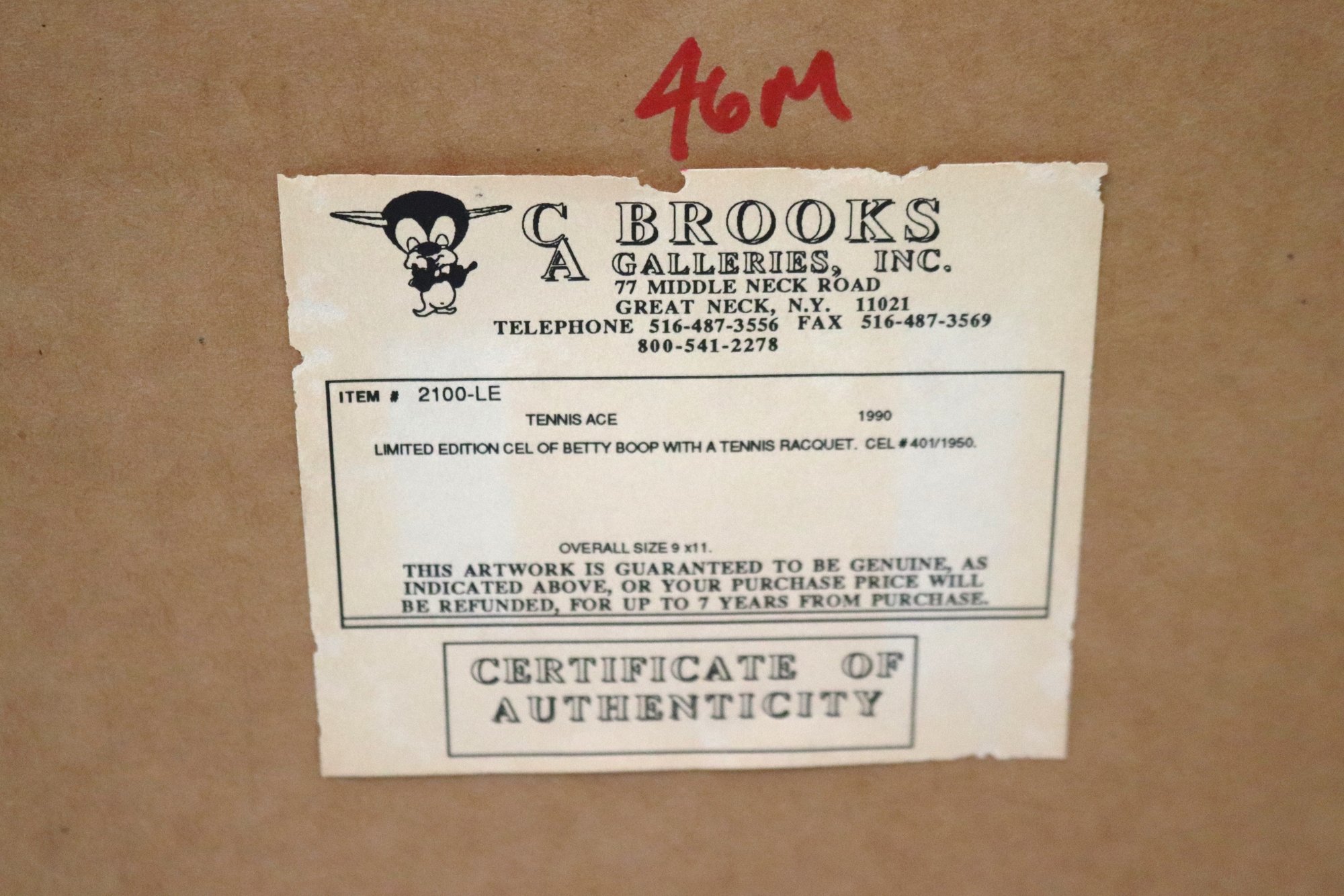 Movie Cel of Betty Boop signed by artist with COA.