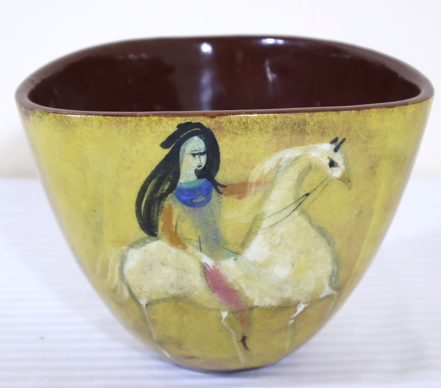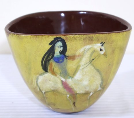 Polia Pillin pottery bowl, likely from the mid-20th century. Signed on underside. Polia Pillin