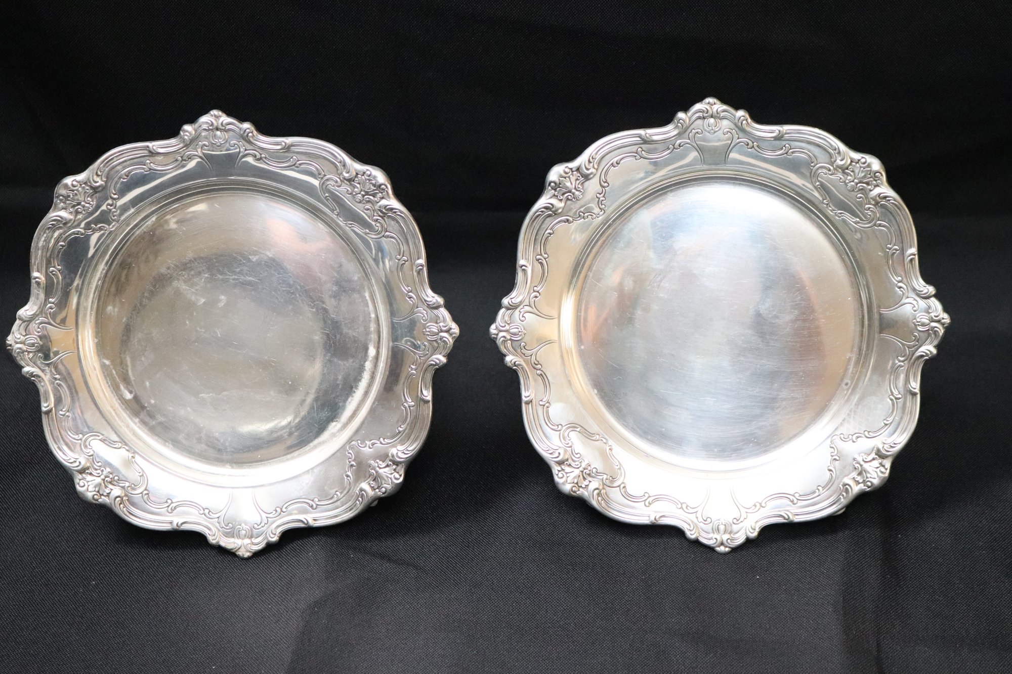 Gorham Sterling silver pair of appetizer / dessert plates 6” Dia. Weight 6.3 ozt
