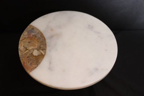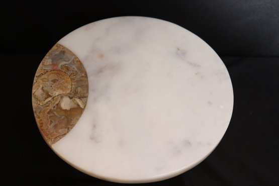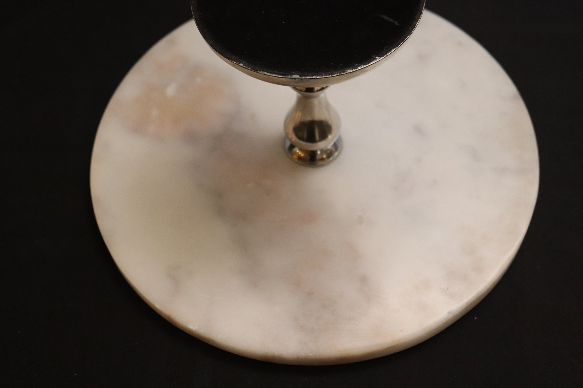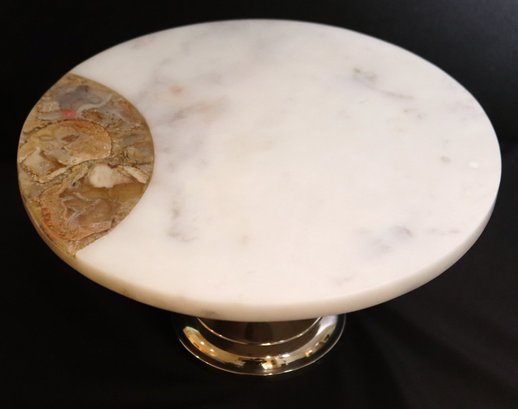 Quality marble pedestal serving dish, this fine piece measures approximately 12”