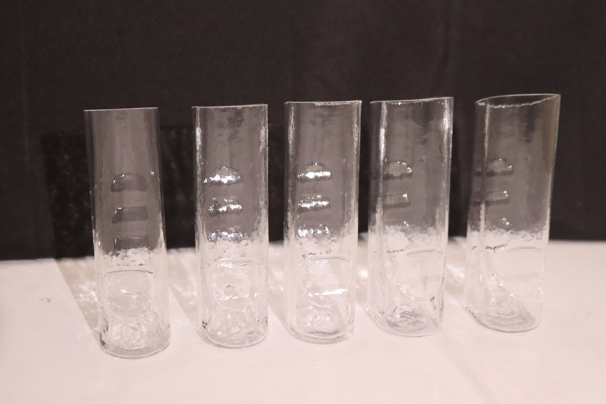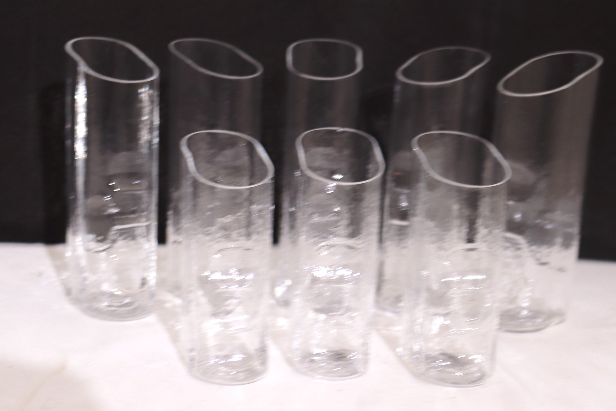 Rare Claus Joseph Reidel set of 5 tall and 3 short glasses with slanted