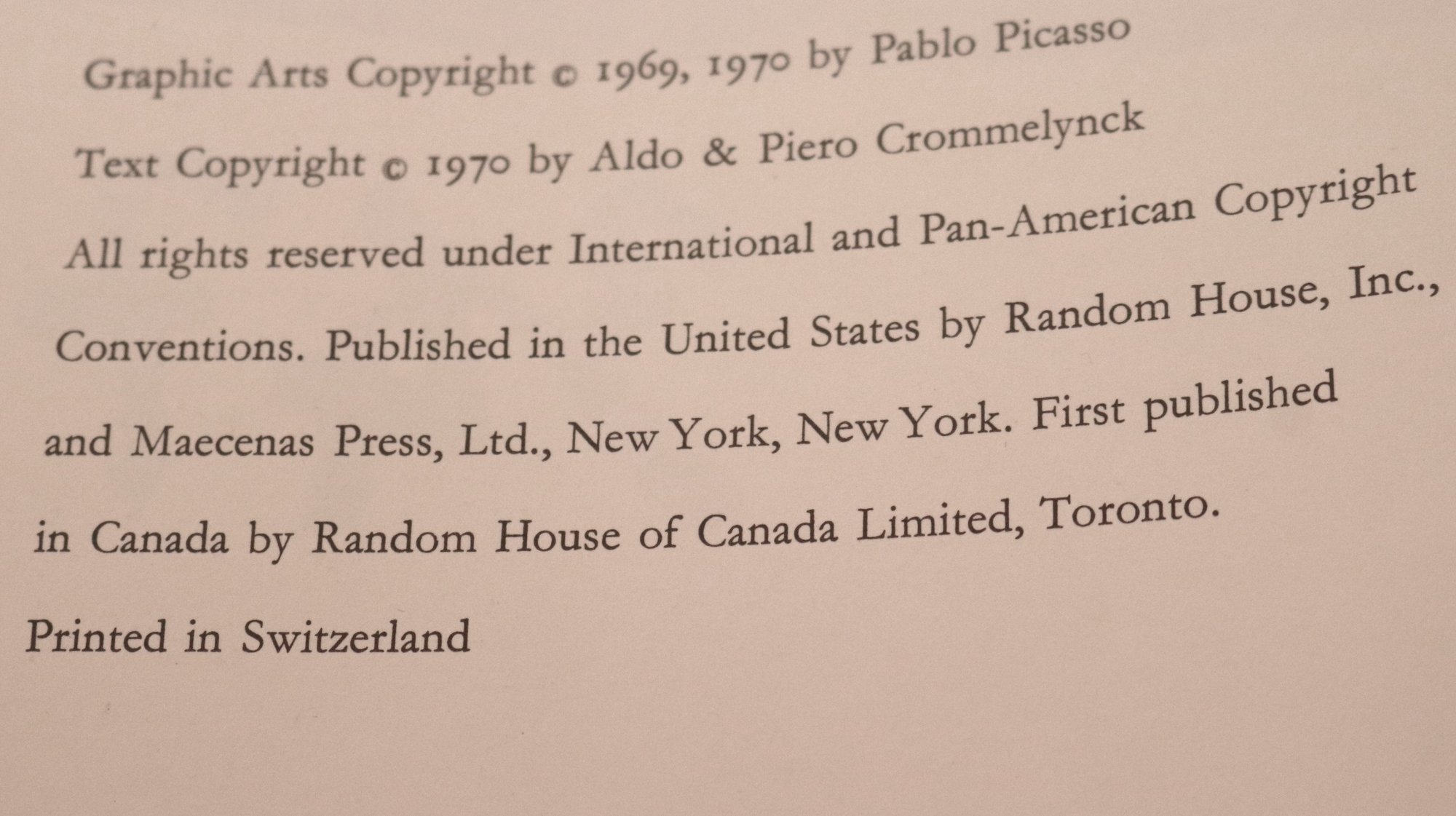 Rare Picasso 347 illustrated 2 volume set First Edition 1969/1970 from Random House Maecenas Press.