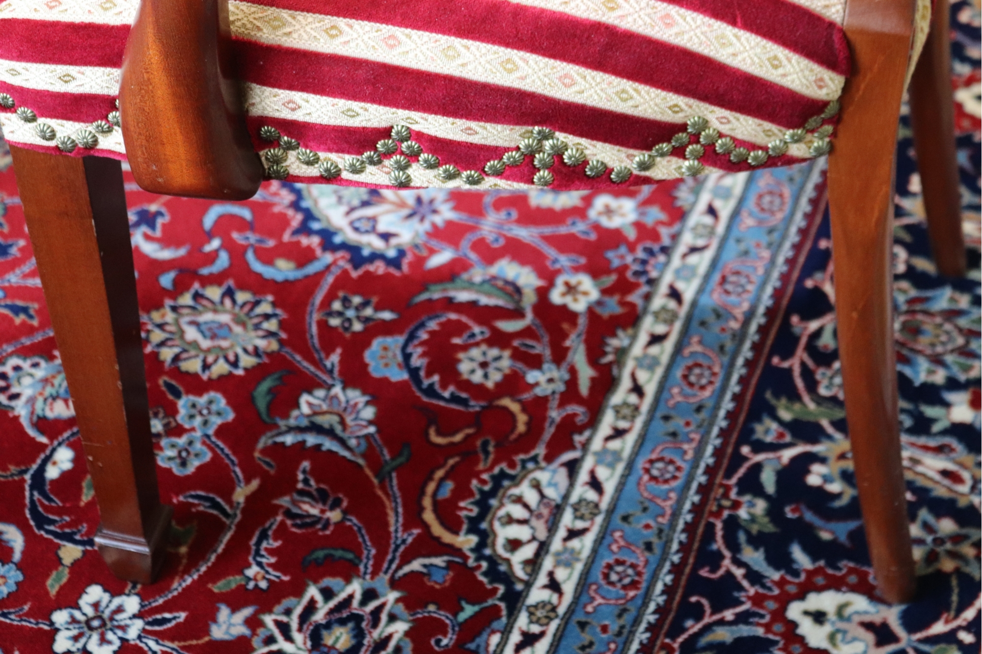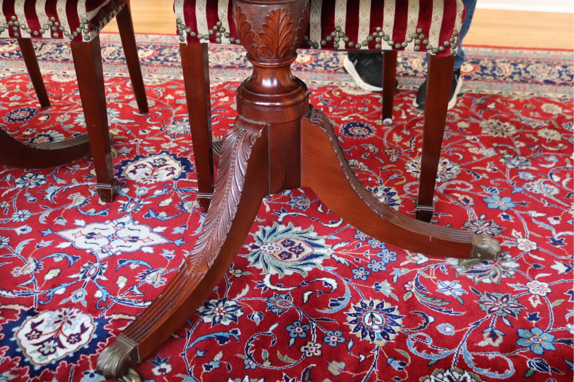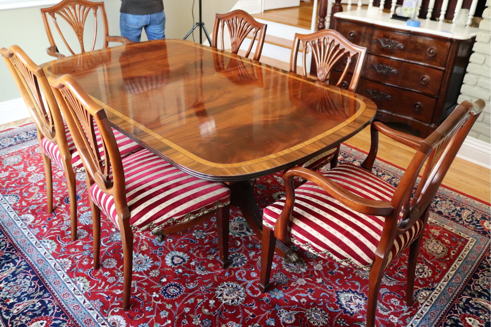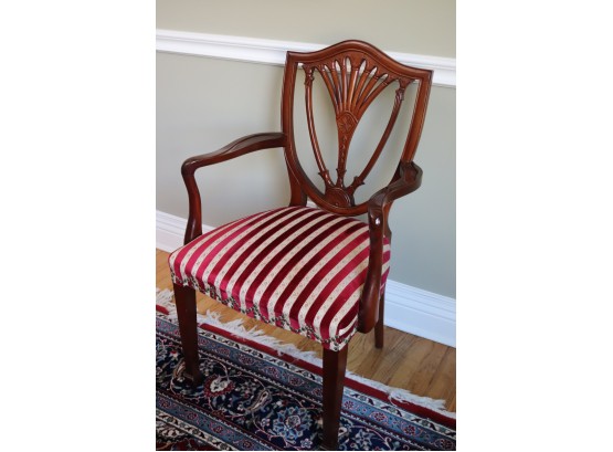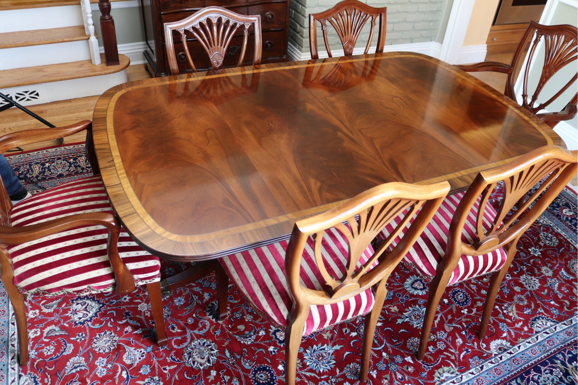 chairs. There are 2 shield back armchairs & 4 side chairs. Seat fabric very clean! Dining Table
