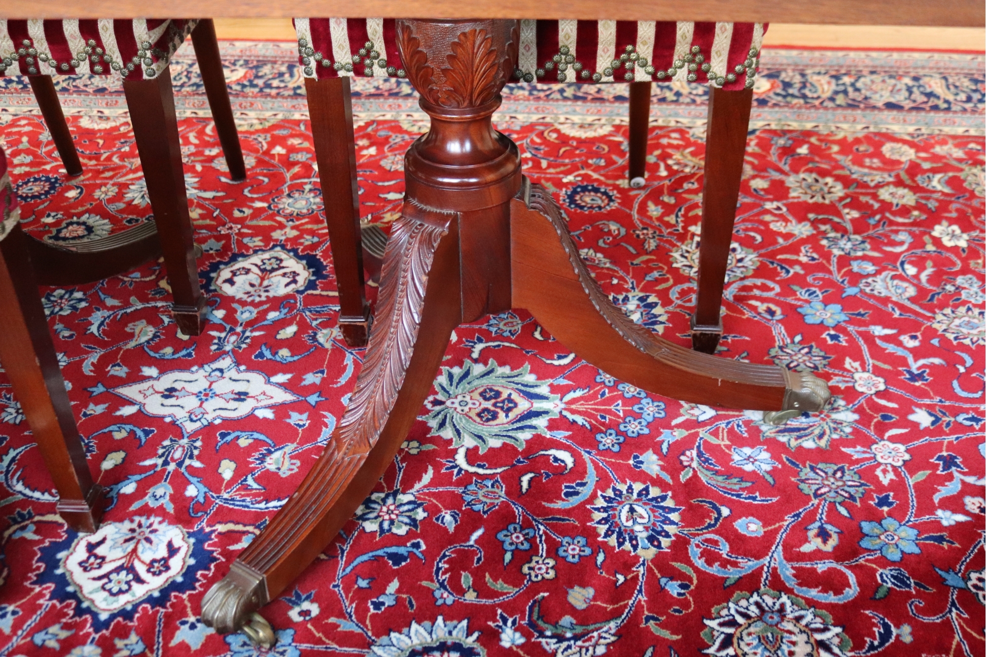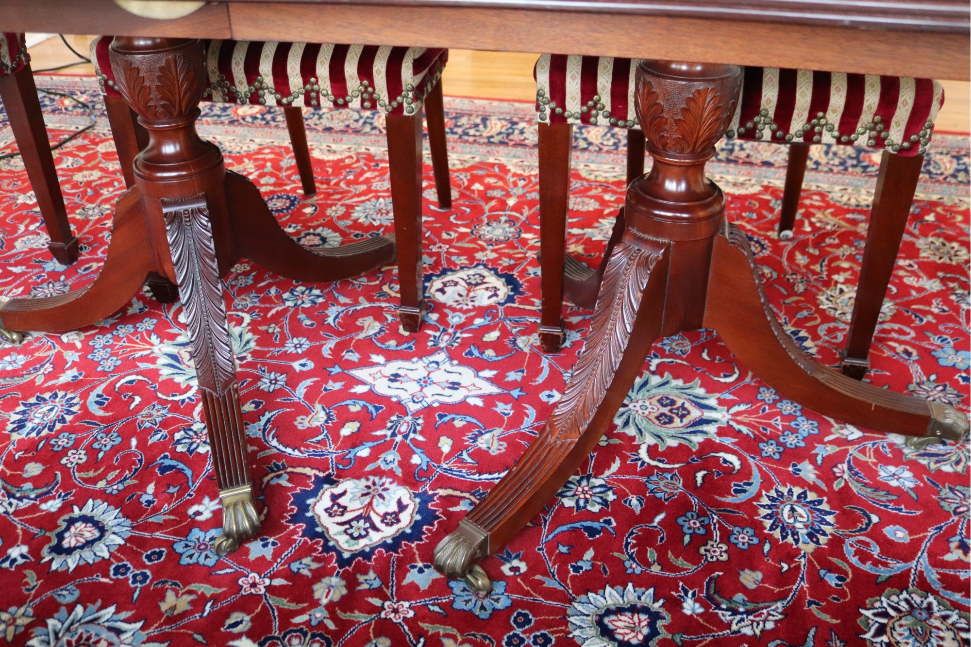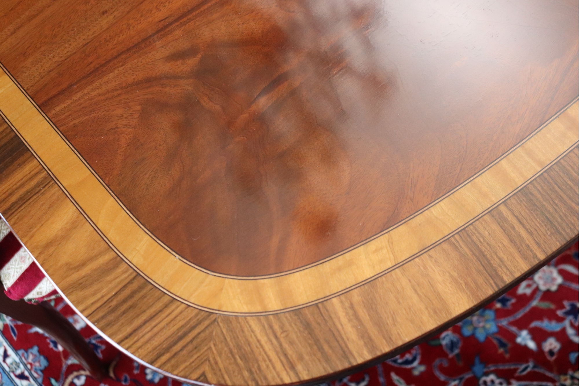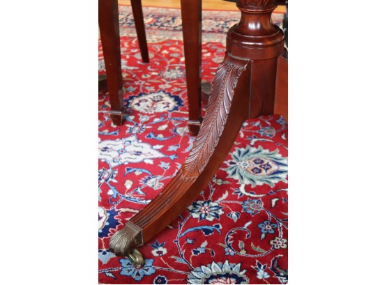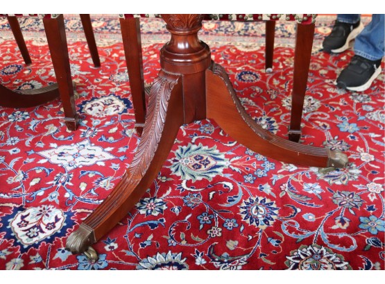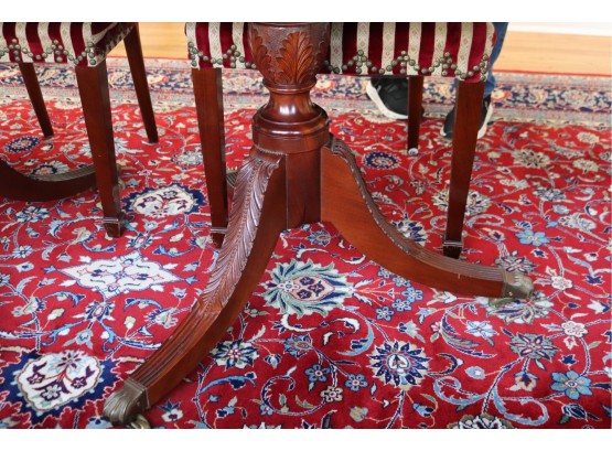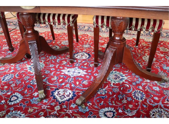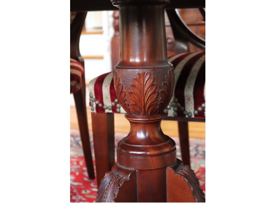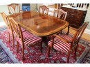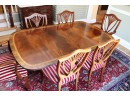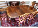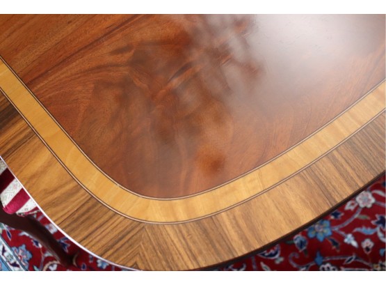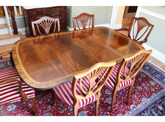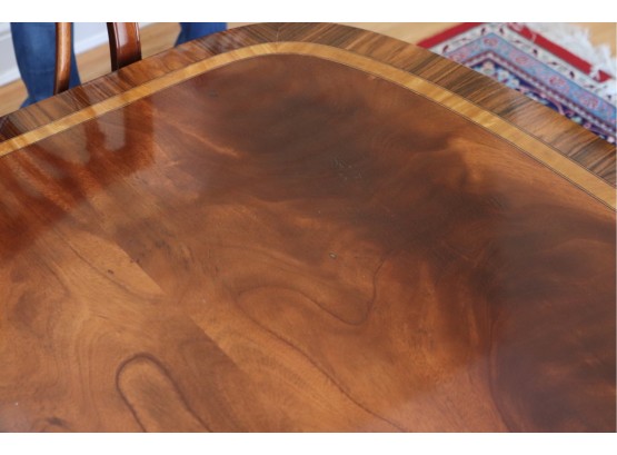Hardly Used Custom Made Duncan Phyfe banded mahogany dining table and 6 shield back