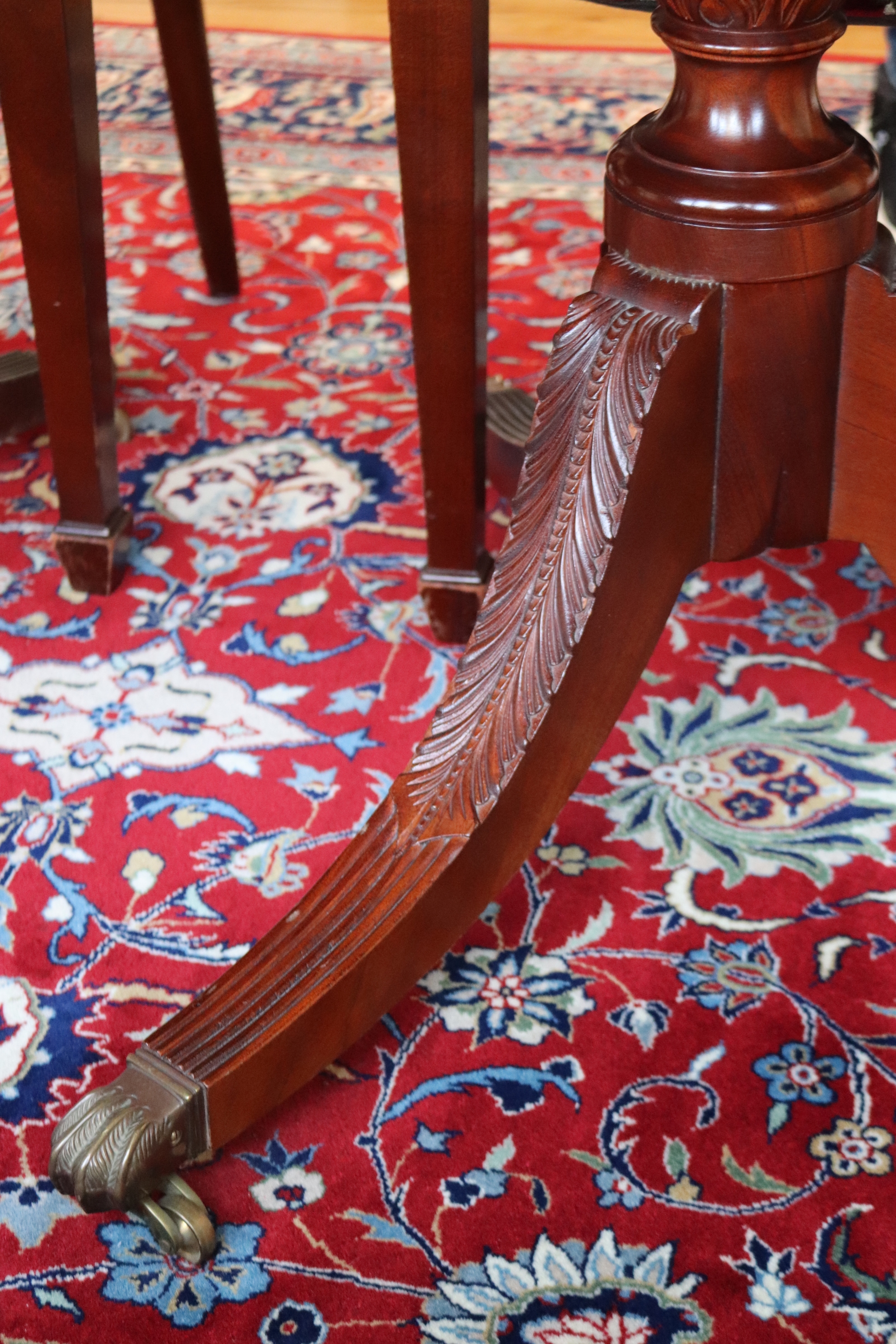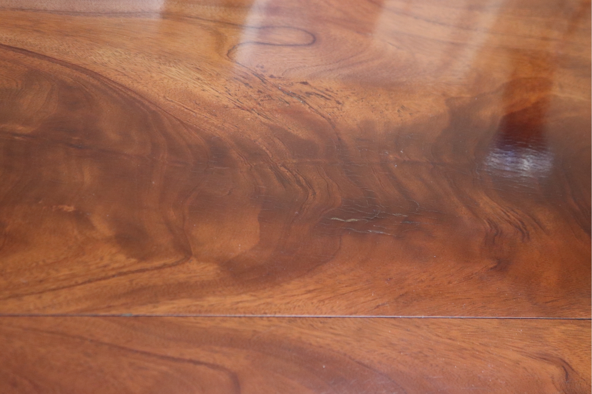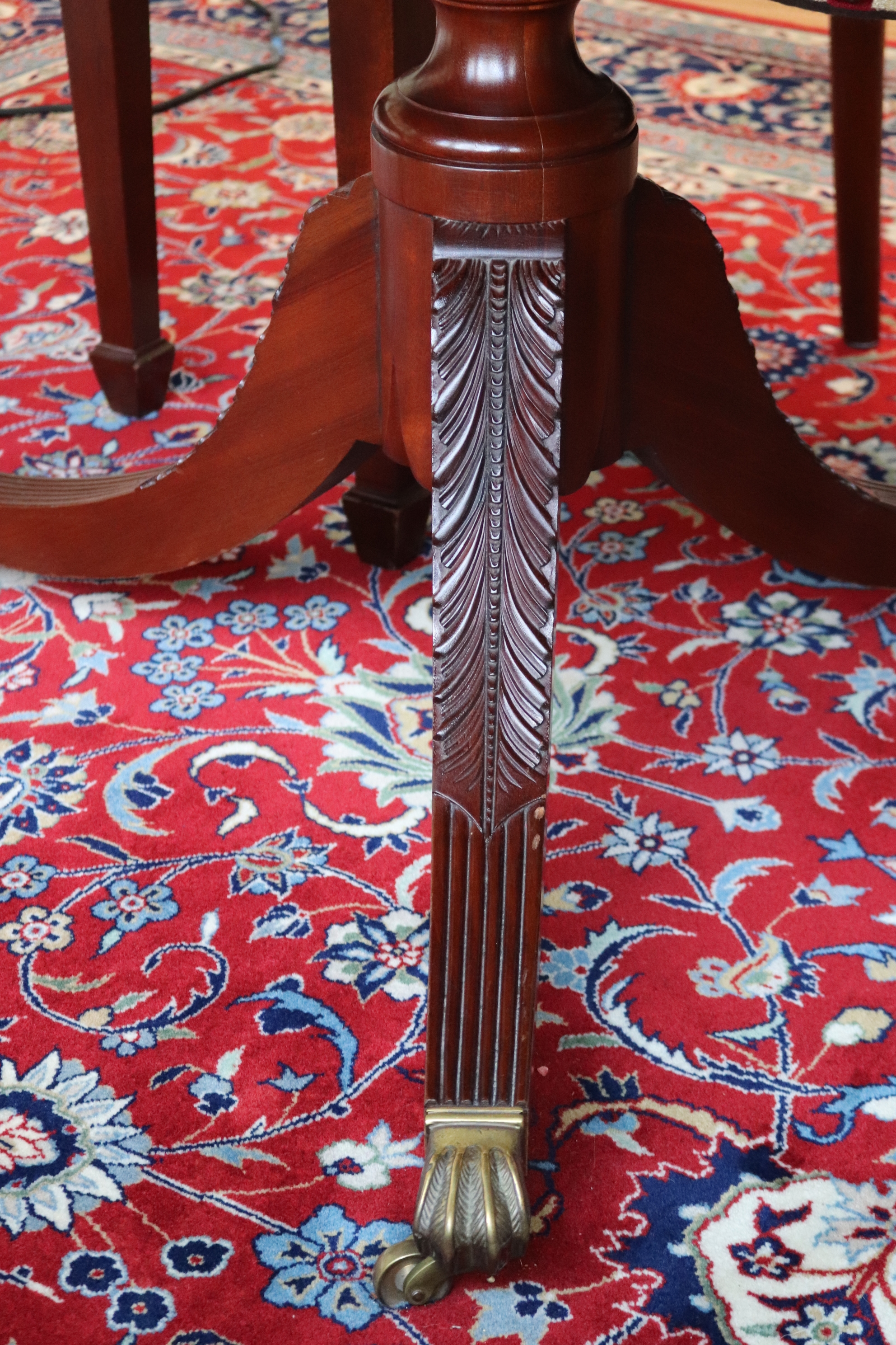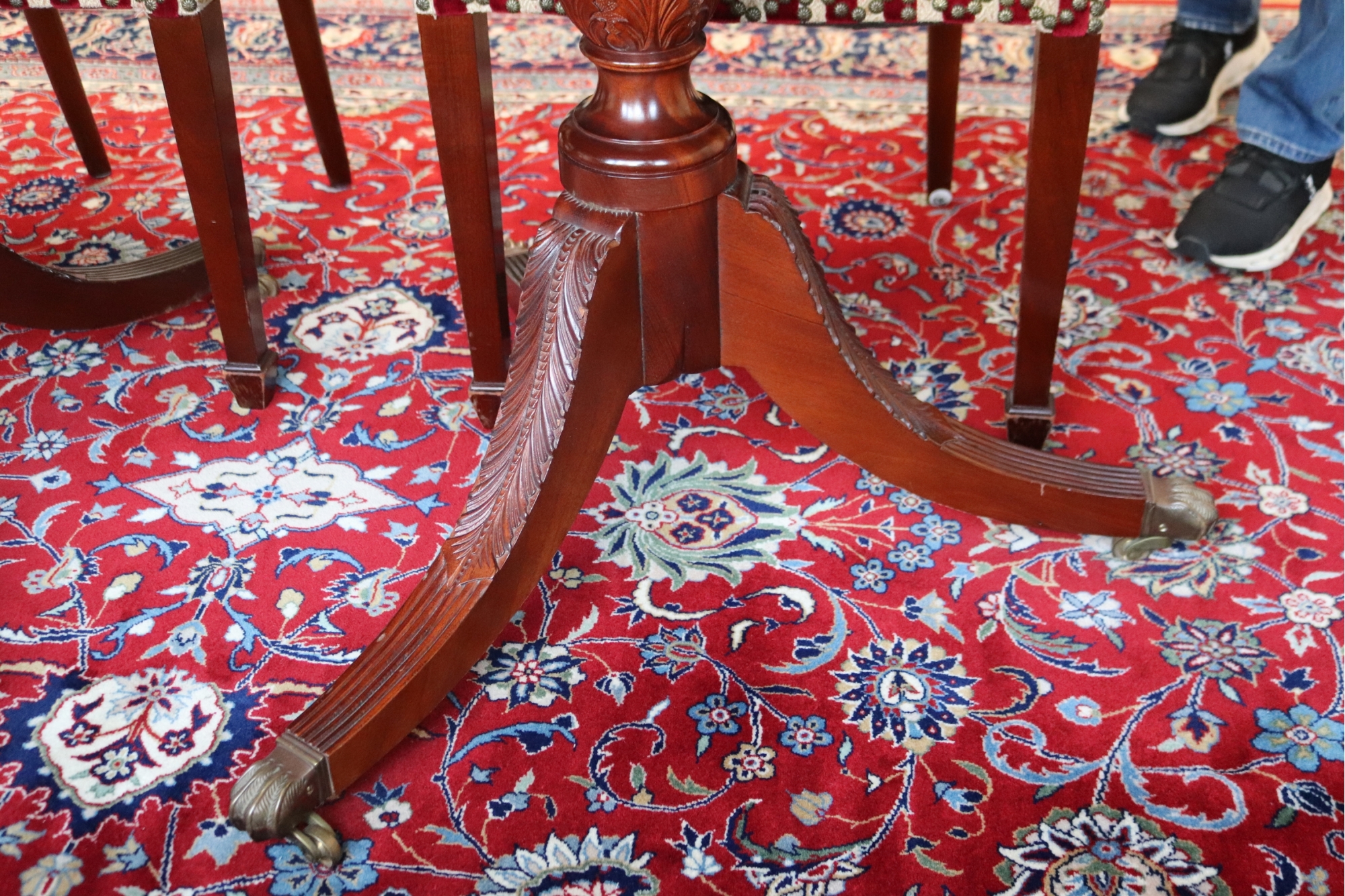 Hardly Used Custom Made Duncan Phyfe banded mahogany dining table and 6 shield back
