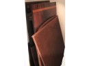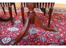 has 2 leaves with banded edging measuring 20” W. Also includes table