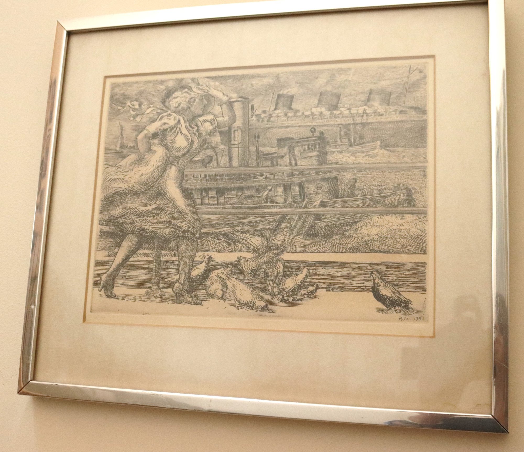 Reginald Marsh “Battery” (Belles), 1938 etching numbered, 3/100.