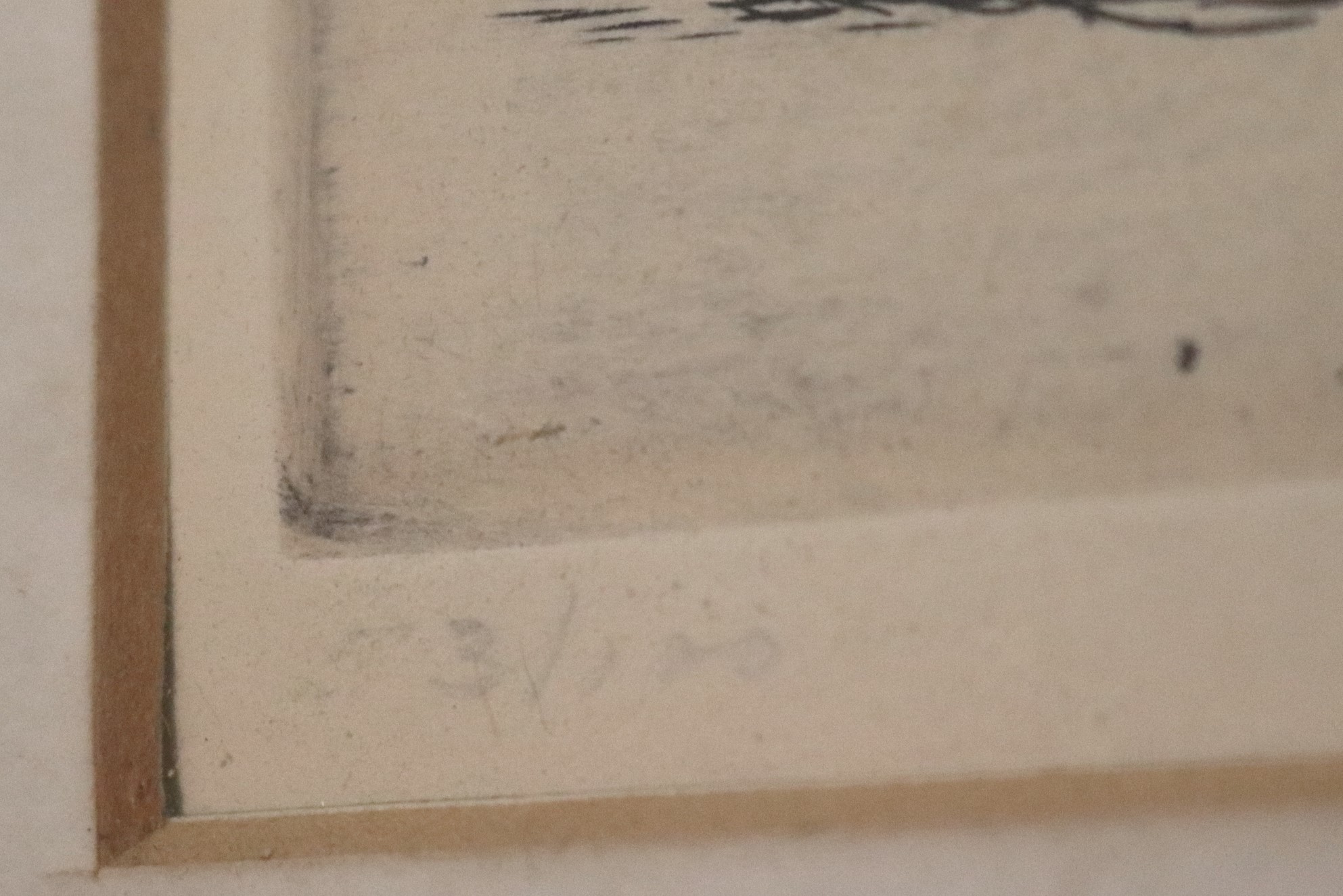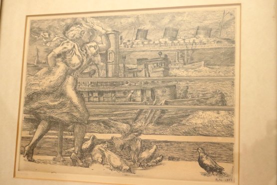 Please Note that this print was created at a later date, (after 1938). This is a reprint from 1969, by the Whitney Museum (see the embossed WM lower right). Tragically, the artist who so loved to capture the expressions of life, died prematurely of a heart attack in 1954 at the age of fifty-six. Since his intaglio plates themselves had the ability to yield more impressions, and it was Marsh’s desire to have the widest distribution possible, his widow Felicia Marsh authorized the Whitney Museum to produce a posthumous printing of a select set of her husband’s work in 1969. Choosing 30 plates, the Whitney worked with master printers Anderson and Lamb to print a limited run of 100 impressions of each. The Whitney Edition