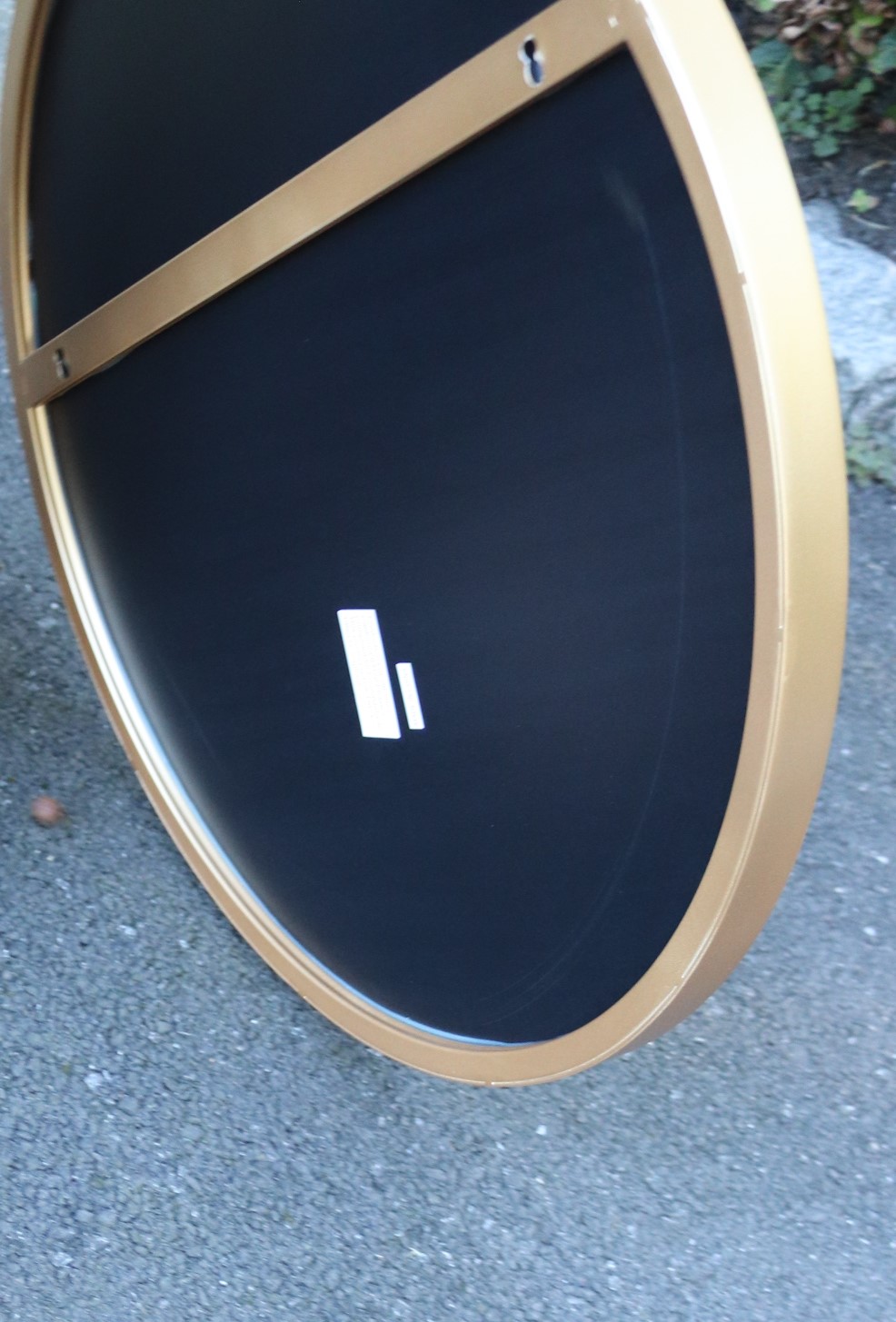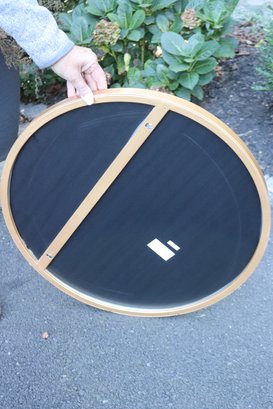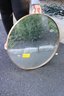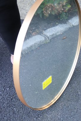 Round modern wall mirror with box measuring approximately 24” diameter.