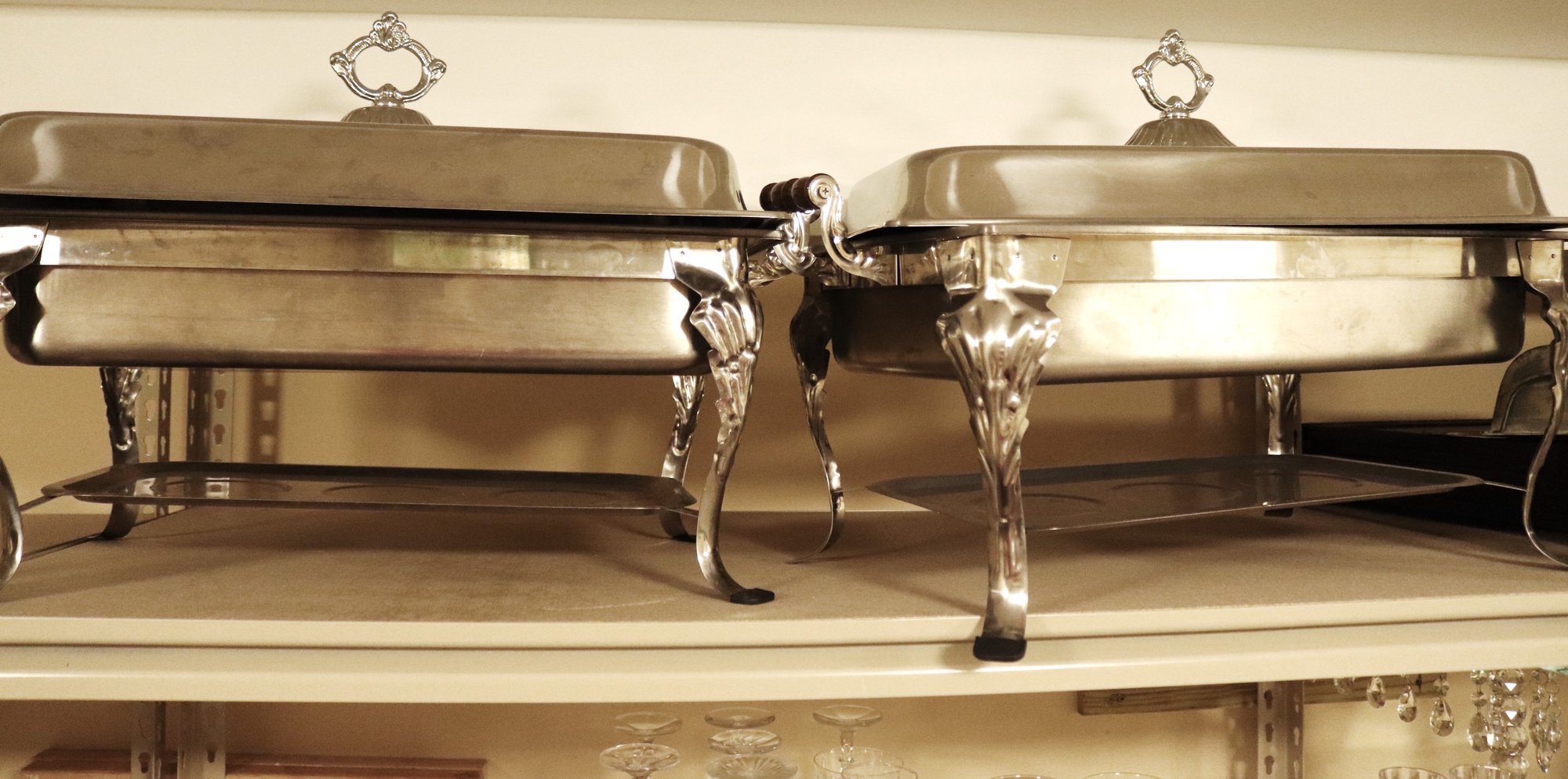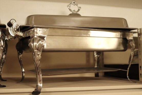 Serving trays approximately 24” long x 14” d x 16” with lids.