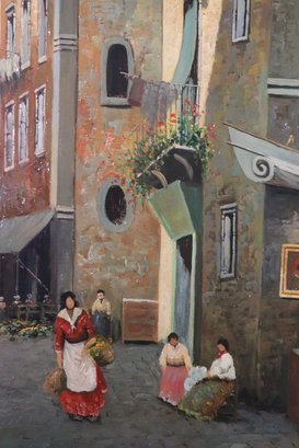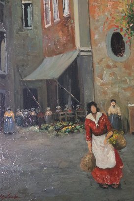 Signed painting of a Paris street scene signed by the artist on the lower left corner,