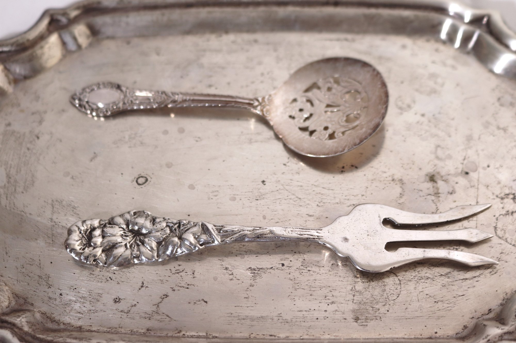 - iIncludes sterling, fork, plus bonus pierced community plate spoon (not in weight )