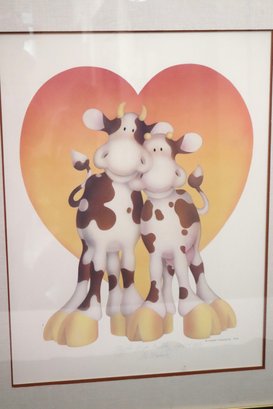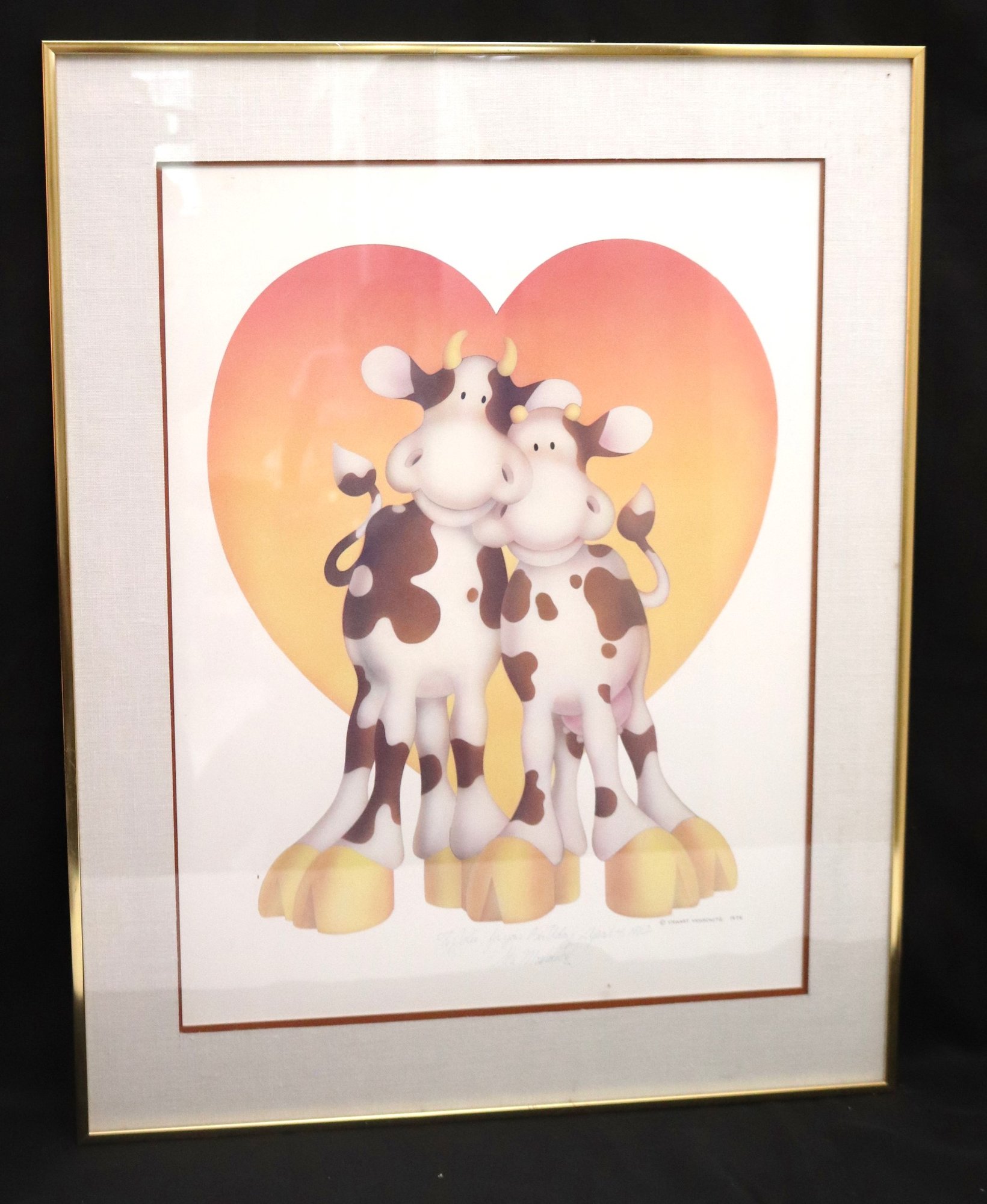 Stewart Moskowitz 1974 Loving cows framed print. Art measures 16 1/2” x